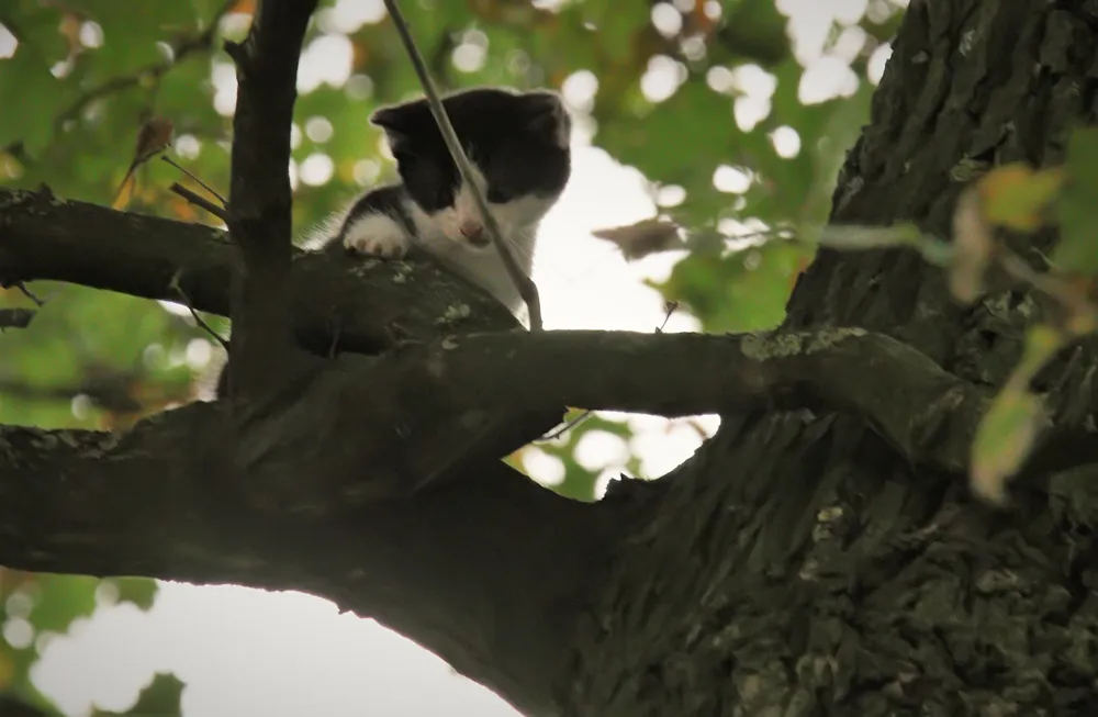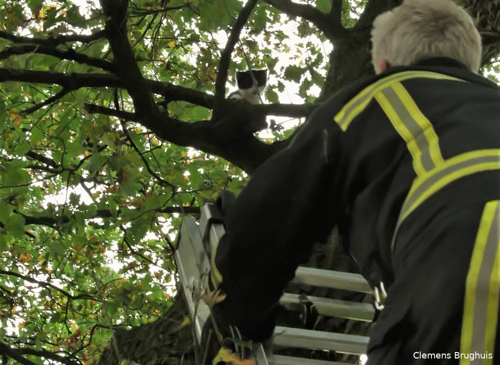 Aangekomen bij de Huyerenseweg in Tubbergen, nabij de middelbare school Canisius, betrof het dier in nood een jong katje dat in een boom was geklommen en niet meer naar beneden durfde.