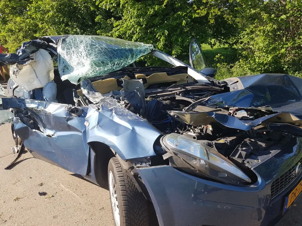 Hoewel haar voertuig naar duidelijk z'n grootje is, kon de autobestuurster rechtop lopend naar de opgeroepen ambulance. Ze is voor controle mee naar het ziekenhuis.