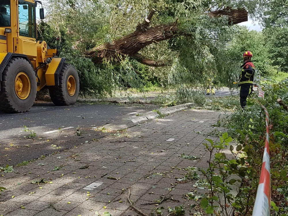 Vandaag zijn hulpdiensten meermaals in touw geweest om door het onstuimige weer omgevallen bomen, afgebroken takken en andere over straat waaiende rommel weg te halen.