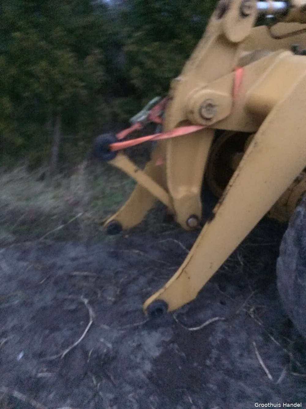 Een speciale metalen schudbak voor het optillen van losse stenen, die aan de voorkant van de shovel vastgemaakt zat, ontbreekt nog.