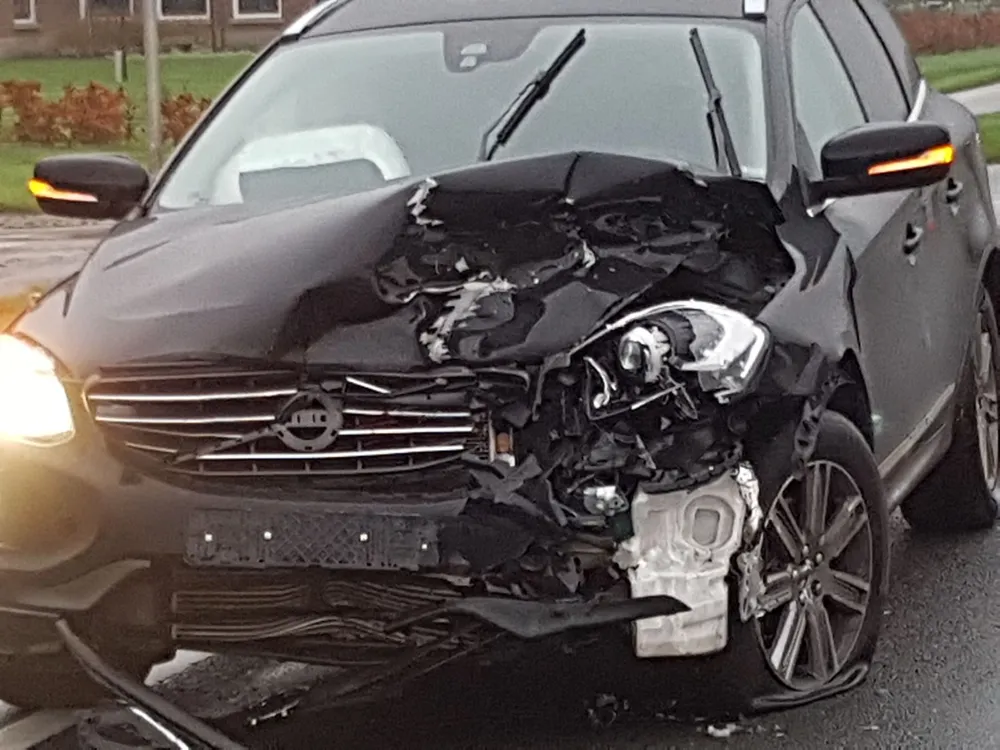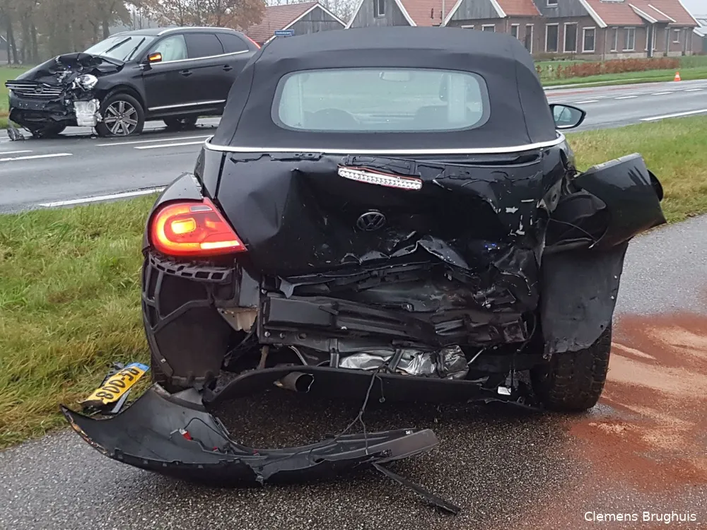 Door nog onbekende oorzaak botsten 2 auto's op elkaar en ontstond er flinke schade.