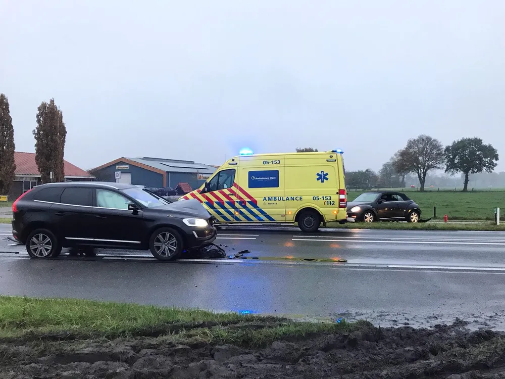 De hulpdiensten zijn vanmorgen uitgerukt voor een melding van een aanrijding tussen 2 auto's op de Ootmarsumseweg (N349) in Albergen.