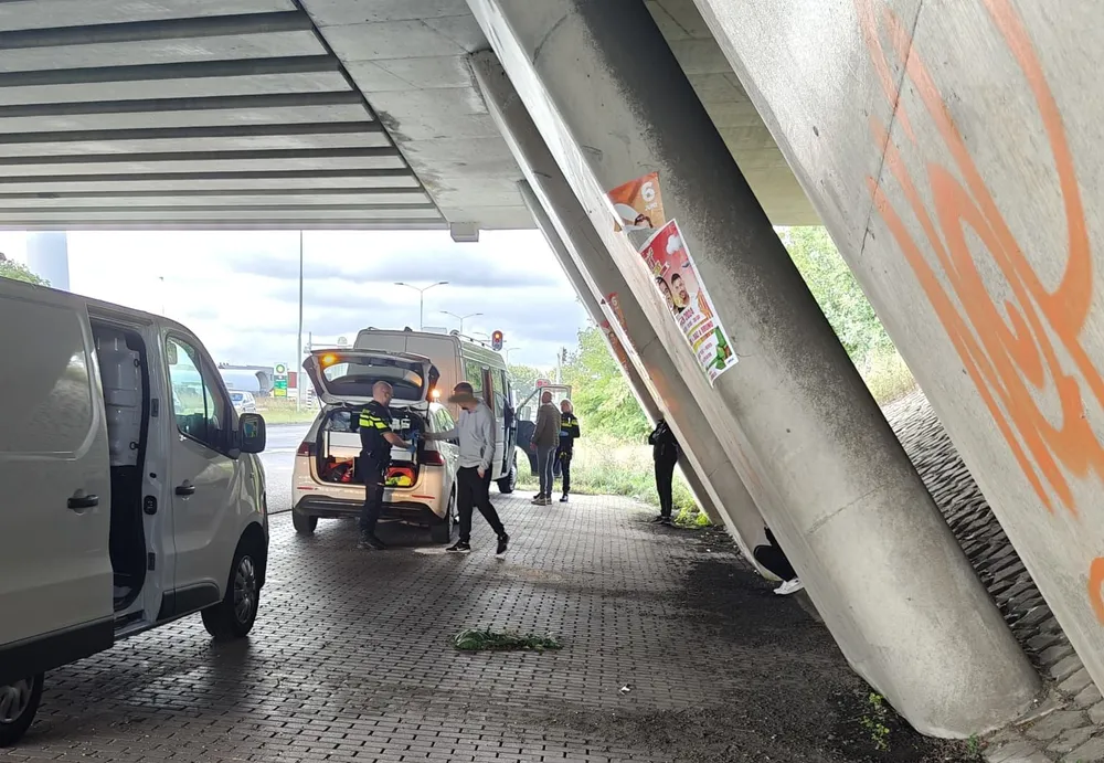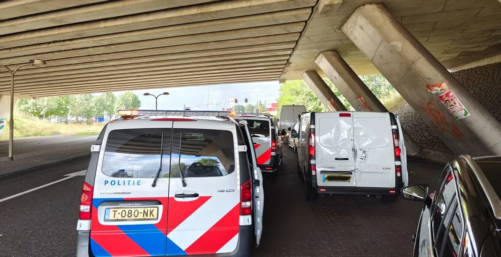 De verdachten kozen gelijk eieren voor hun geld, stopten hun voertuigen onder een viaduct. Hierop doorzochten agenten de bussen en hierin stuitten ze al gauw op de gestolen waren. "Net een scène uit een actiefilm, zo apart. Maar heel mooi dat we dit konden doen. Iedereen is dik tevreden over de uitkomst, dat er drie verdachten zijn opgepakt en het gereedschap waarschijnlijk allemaal terug naar de eigenaar kan."