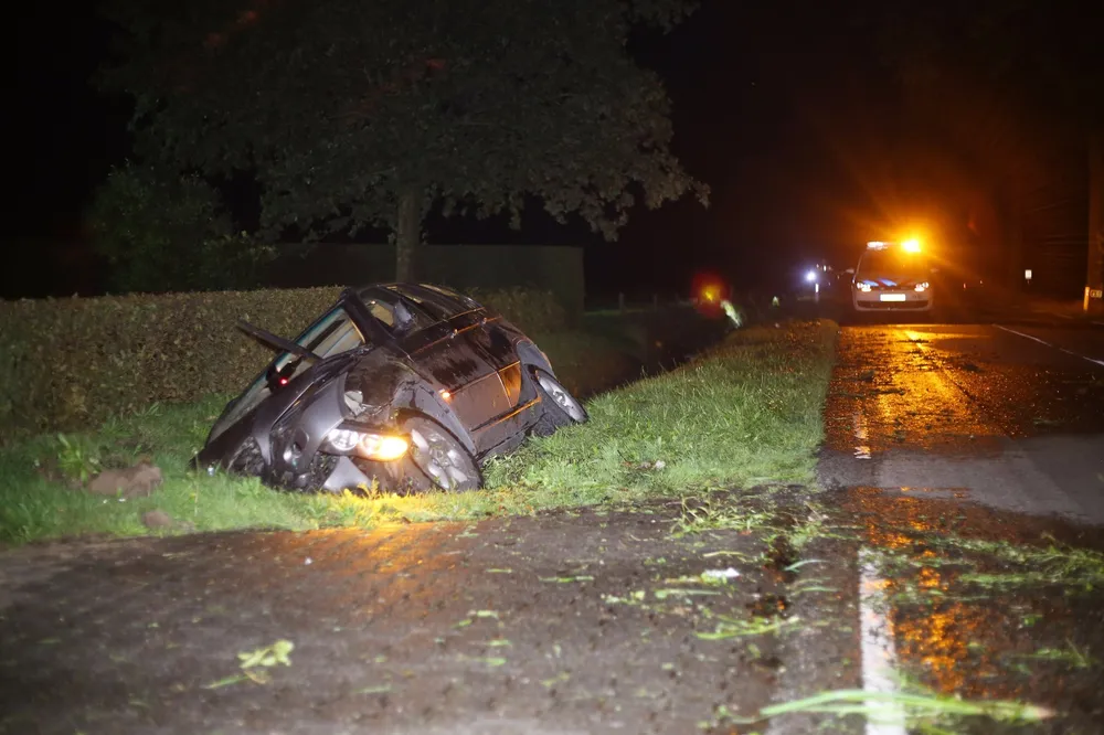 Uit sporenonderzoek bleek dat de auto eerst ruim 200 meter met een wiel door de berm heeft gereden. De laatste meters werden in een sloot afgelegd. De auto is door het ongeval een total-loss.