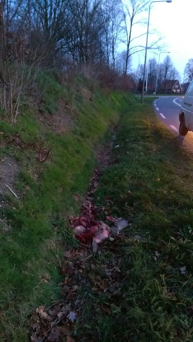 Een gruwelijk tafereel dat bij menigeen nog lang op het netvlies zal blijven staan, gistermiddag op de rondweg van Tubbergen. En dan bovenal voor mensen met enig hart voor dieren.