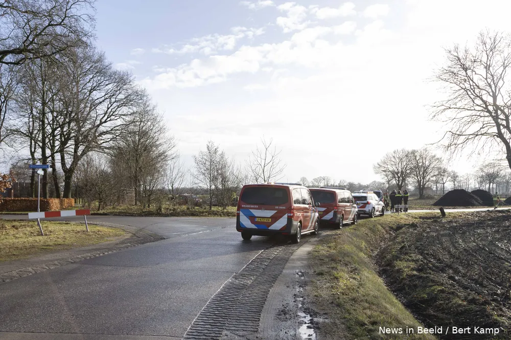 De politie, de omgevingsdienst en de brandweer hebben op dit moment de Veeneggeweg in Geesteren afgesloten.