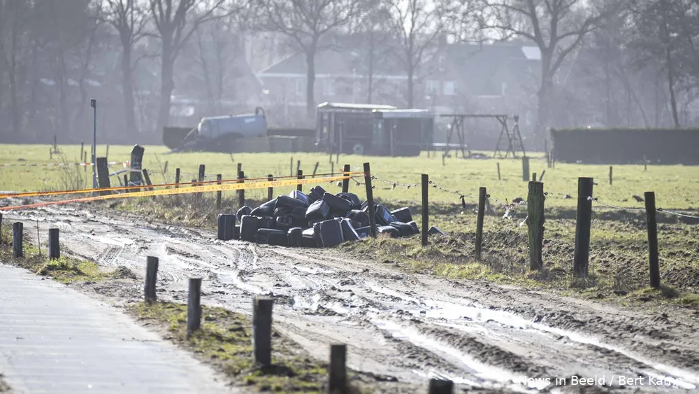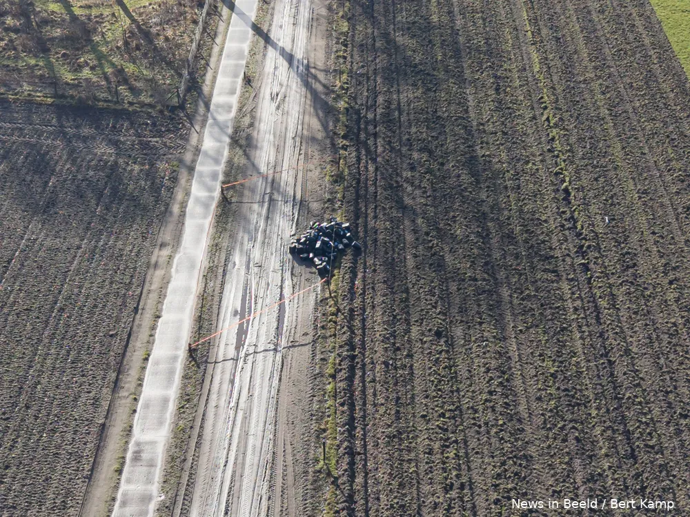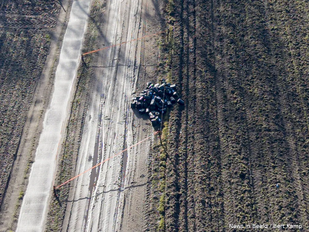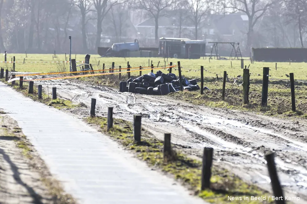 Op deze weg zijn vaten met een onbekende vloeistof aangetroffen. Mogelijk gaat het hier om een dumping van drugsafval.