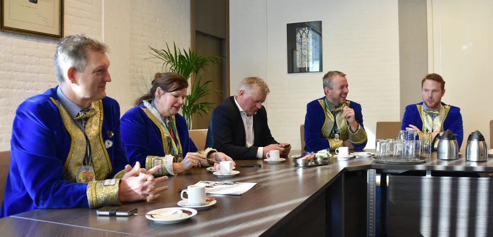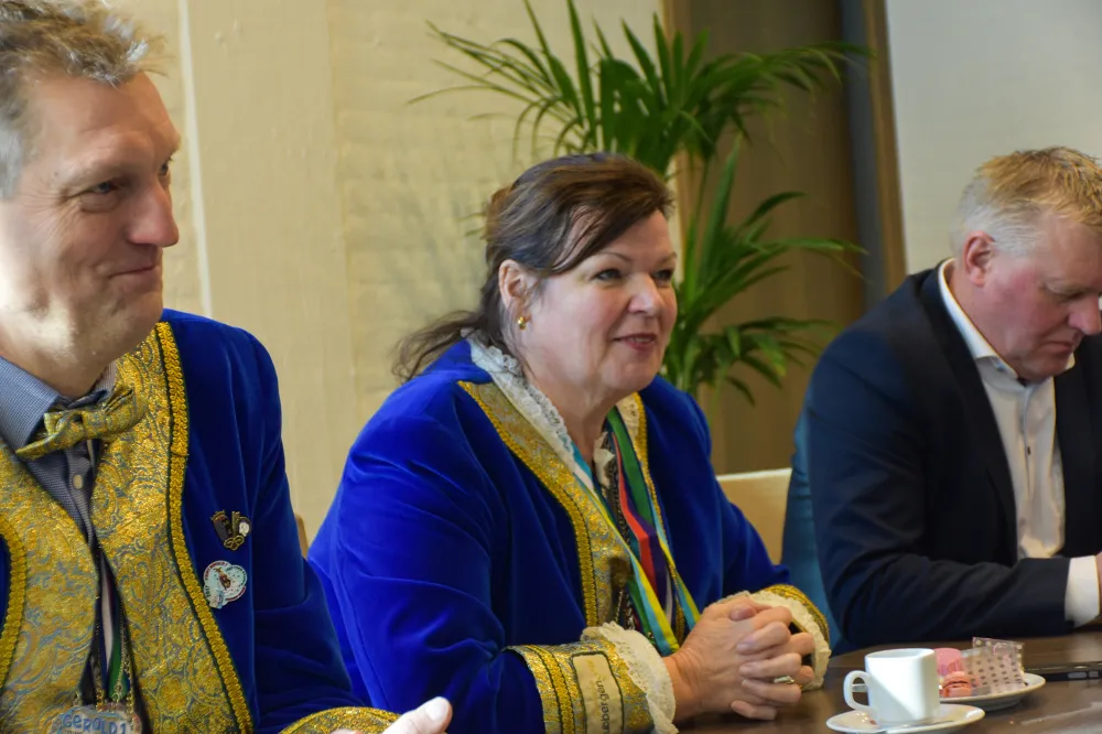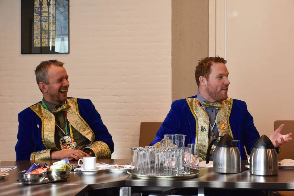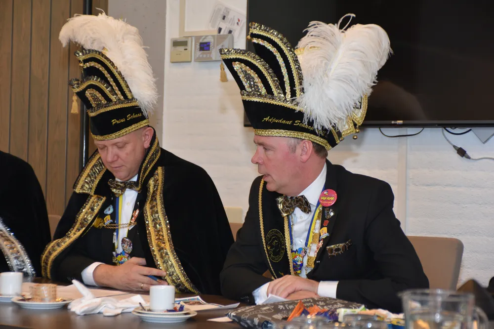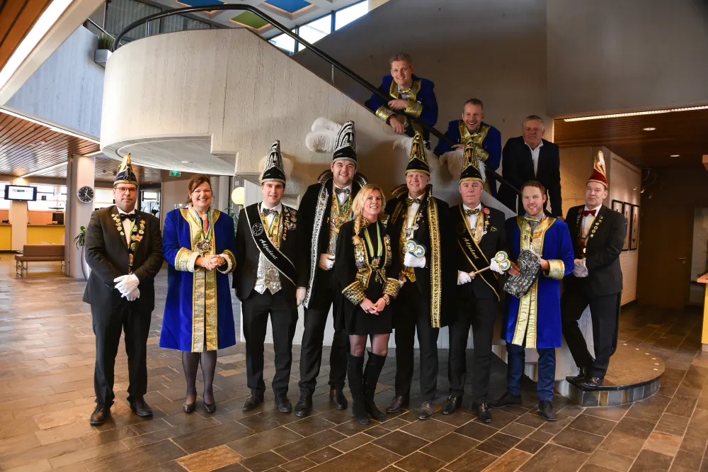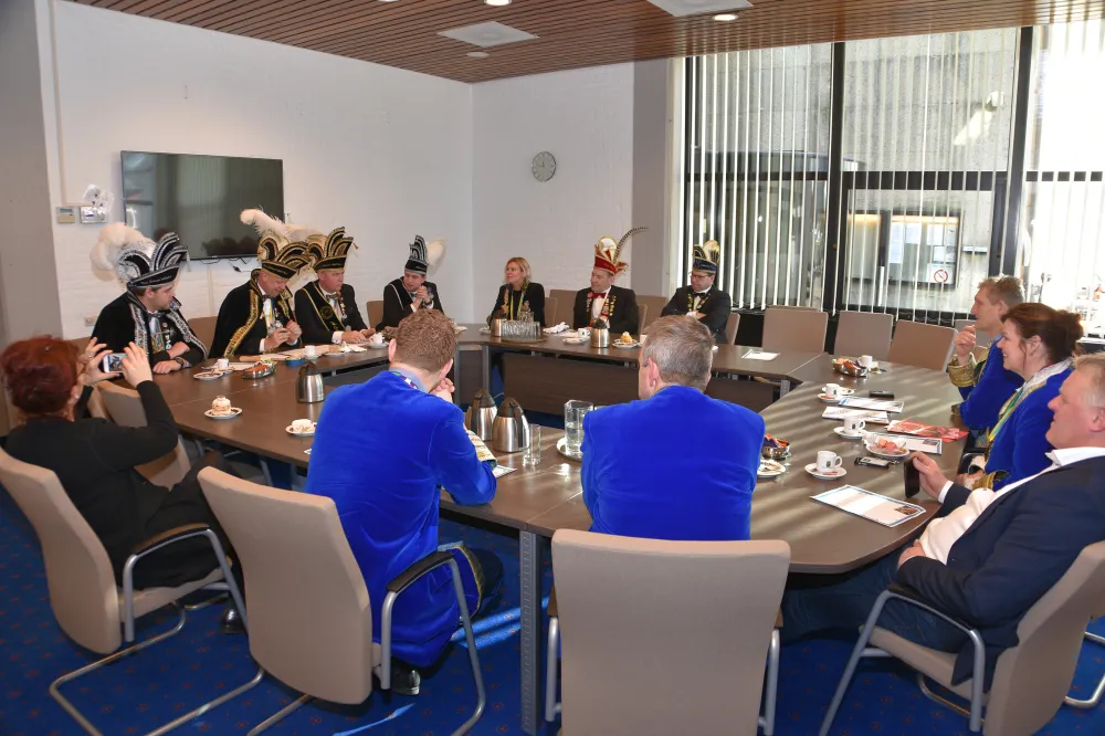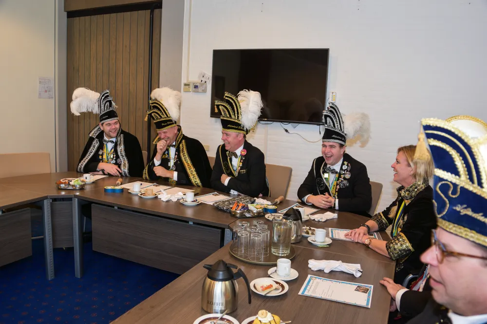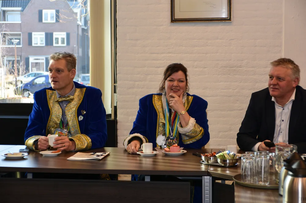 De wekelijkse collegevergadering werd vanmorgen geleid door sleutelprins Marco, adjudant Jeroen, jeugdprins Jesse en jeugdadjudant Jasper van de Schaop'nböll'kes uit Tubbergen.