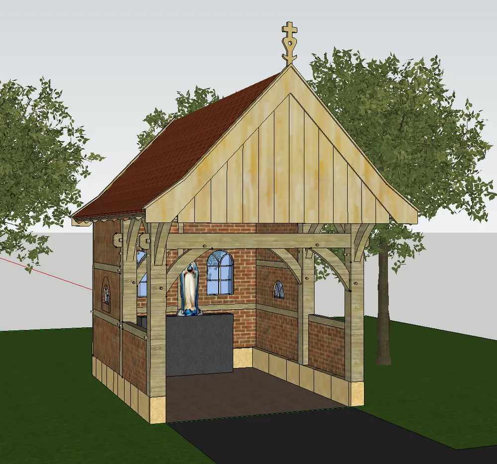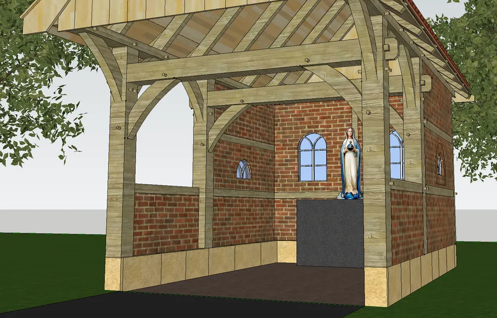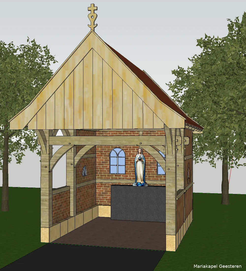 Ondertussen heeft ook bouwkundig bureau Meinders en Harrie Meinders het ontwerp klaar: een mariakapel in relatie tot de bouwstijl in deze streek met eiken gebinten, Bentheimer kalkzandsteen en met nog een aantal fraaie details. De kapel straalt rust uit en past het in de fraaie omgeving van de Meijersweg.