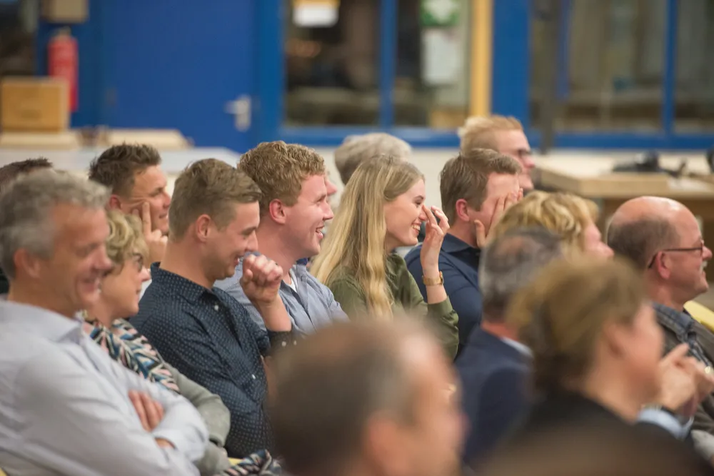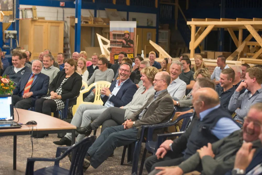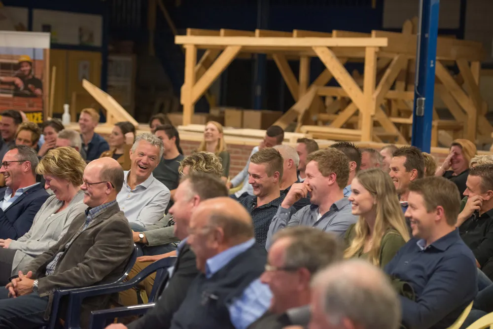 Cabaretier Thijs Kemperink fungeerde de avond als gastheer en had met zijn gevatte verhalen en kwinkslagen de lachers al snel op de hand. Maar het was niet alleen jolijt deze avond, want er werd ook serieus gesproken met directeur Dick Nijkamp van de bouwonderneming Goossen-Te Pas en Rob Hazelhof van het ROC van Twente (dat voor de leerlingen van Bouwmensen Twente Almelo de theorieopleiding verzorgt) over de beloftevolle toekomst van jonge mensen die met een vakdiploma aan de slag gaan in de bouw.