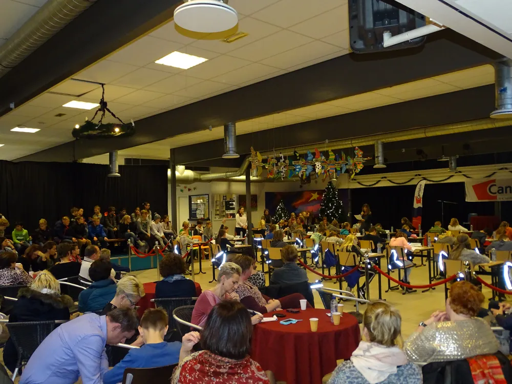 Hoe zat het ook alweer met het 'kofschip' en de 't'? Schrijffoutjes maakt bijna iedereen en dat is het voor sommigen maar wat leuk om de ander erop te wijzen... Vandaag werd het Junior Dictee voor basisscholen weer gehouden bij Canisius in Tubbergen. En het ging er fanatiek aan toe, ook op de publieke tribune waar ouders en leraren vol spanning toekeken op de deelnemertjes.