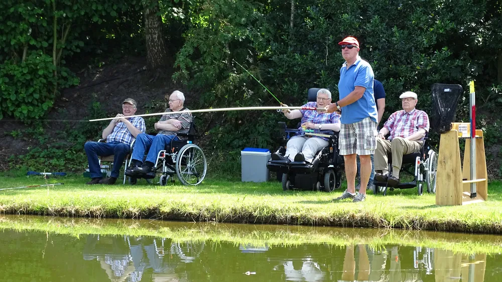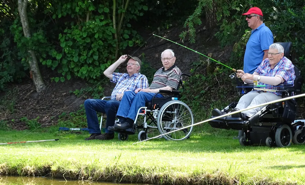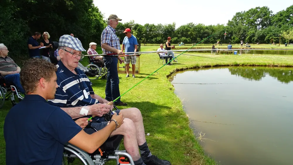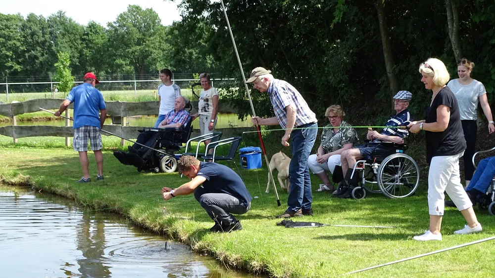 Bewoners van het nieuwe woon-zorgcentrum Erve Mensman van TriviumMeulenbeltZorg zijn vandaag getrakteerd op een middagje forelvissen. Ze gingen onder begeleiding van vrijwilligers naar de Broekbeke Visvijvers aan de Hardenbergerweg in Geesteren.