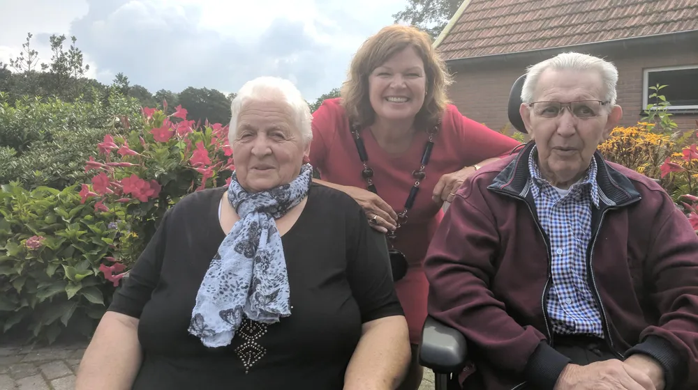 "Op 'n bult en tussen de watermolens", zoals Annie van der Ham-Horst (82) het woonerf 'n Engel zelf omschrijft. Het stukje vals plat dat gelijk voor de deur ligt, trekt inderdaad behoorlijk wat recreanten en wielrenners die er de kuiten willen testen. Tussen de koeien, bomen en veel natuurschoon wonen 3 generaties samen. Jan van der Ham (87) is er geboren en getogen, zeker nadat hij zijn vrouw in alweer 1957 'ophaalde' uit West-Geesteren. "Vanaf de Vermolenweg." Ontmoet hebben ze zich daar in Geesteren ook, bij café Kottink op de dansvloer. Daar gingen de voetjes van de vloer, net als bij café Kemperink in Tubbergen. Er volgden 5 jaar verkering, waarna ze trouwden.