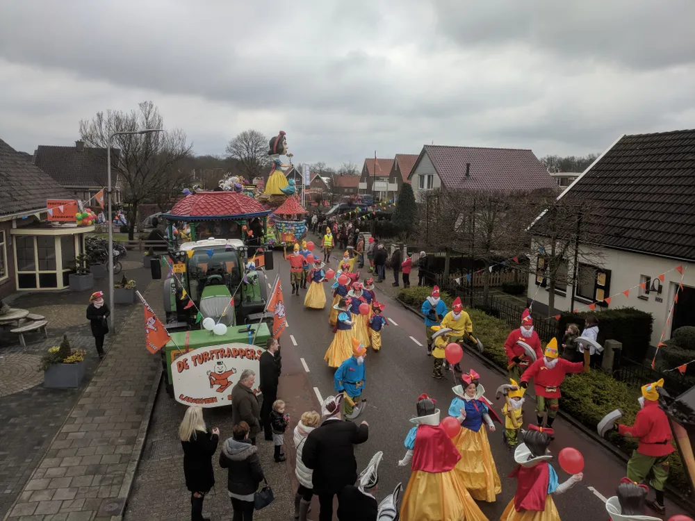 De optocht van de Turftrappers heeft inmiddels een volwassen leeftijd bereikt. Volgens president Thijs Oude Steenhof is dit namelijk het 18e jaar dat de bonte stoet van versierde wagens en uitgedoste deelnemers door het langgerekte dorp trekt. De 'ring van Langeveen' stond ondanks die lengte bomvol, viel hem ook op. "We lopen tegen de grenzen van het fysiek mogelijk aan. Als dit zo doorgaat, moeten we wat anders verzinnen. Misschien de provinciale weg afzetten, als dat tenminste mag."