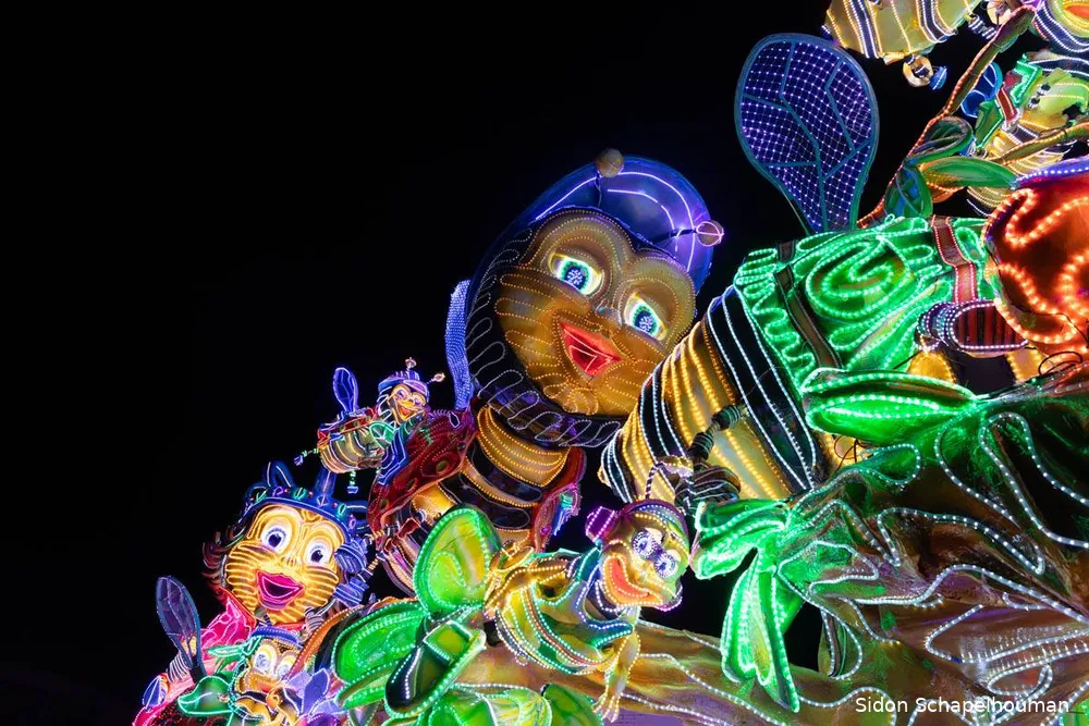 Dat deelnemers er fantastisch uitzien in daglicht, zagen we al bij eerdere optochten in de gemeente. In het donker en met een immense hoeveelheid verlichting, kwamen de wagens en lopers ook geweldig tot hun recht. Een lust voor het oog om te zien.