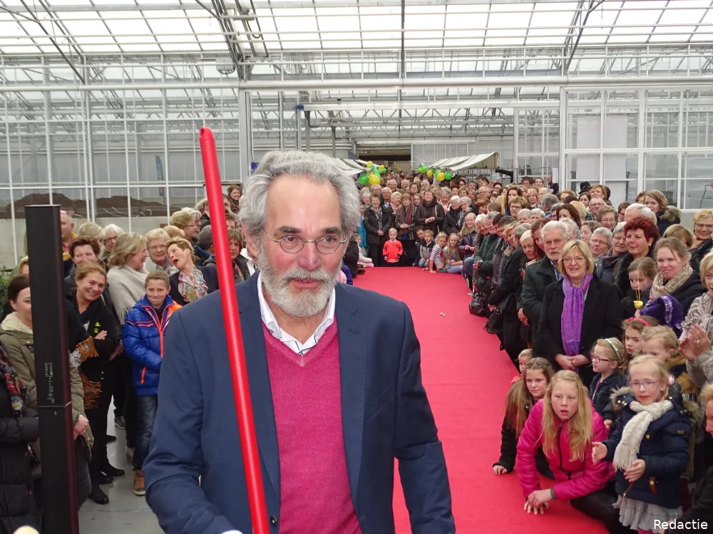 De modeshow vond plaats in de overdekte kwekerskassen. Om te benadrukken hoezeer pa Heerdink ieders bijdrage beviel, kwam hij ook zelf het podium op. Aangekleed door Hamer Schoenen en met in zijn handen een stylevolle bezem zwierde hij ietwat onwennig langs het publiek. Het niet vooraf aangekondigde mannequin kon vervolgens op een daverend applaus rekenen. En zijn familieleden keken vol trots toe.