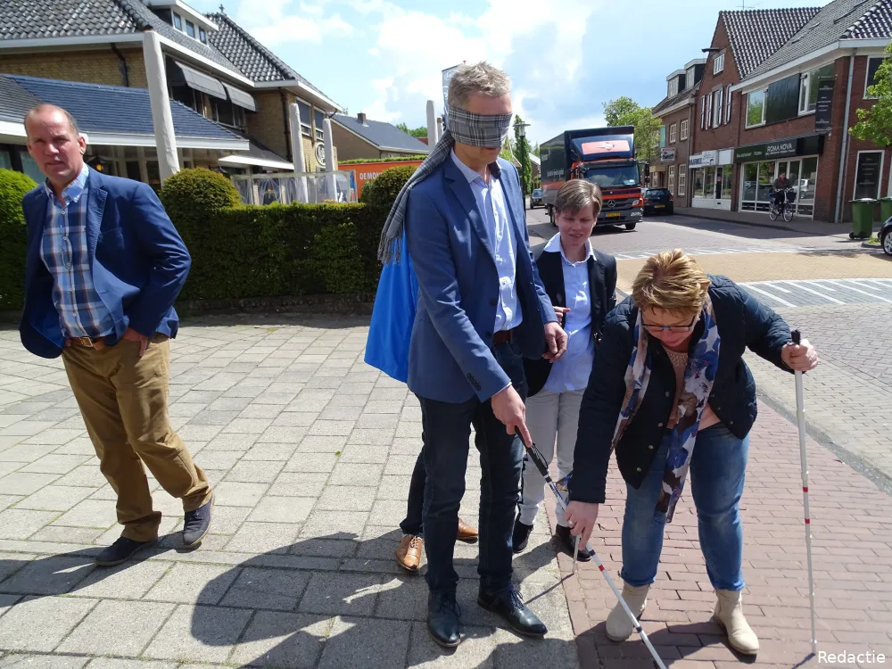 Vanmorgen mochten wethouder Erik Volmerink en dorpsraad-voorzitter Herman Huis in 't Veld zelf ervaren hoe het is om als visueel beperkte door het centrum van Geesteren te wandelen. Dit als aftrap van de werkzaamheden die op dit moment plaatsvinden in het dorp om het centrum beter toegankelijk te maken voor mensen met een visuele beperking. Volmerink: "Er wordt hard gewerkt om ook dit dorpscentrum prettig en veilig te maken voor mensen met een visuele handicap. Dat verdienen zij, niet minder dan een ander. Op initiatief van verschillende inwoners van Geesteren zijn deze werkzaamheden opgestart. De gemeente is bijzonder trots dat de samenwerking op deze manier tot stand is gekomen. Esther Deterink is één van de initiatiefnemers van dit project. Zij heeft in 2008 als lid van de WMO-raad aan de bel getrokken."