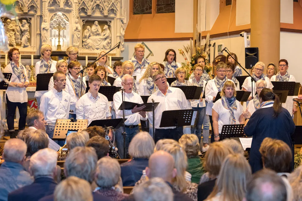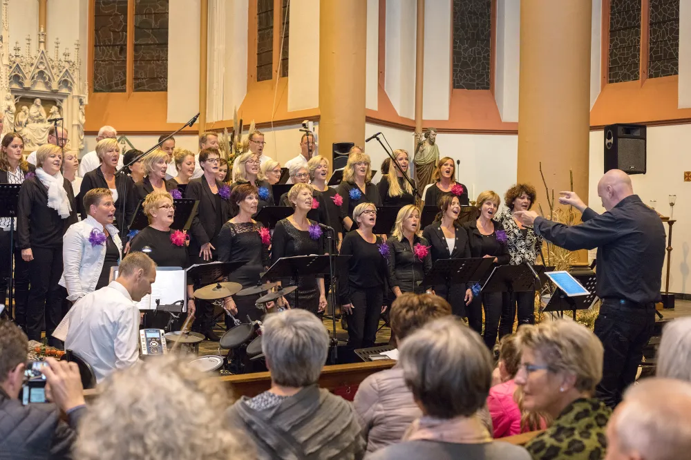 De popkoren Happinezz uit Albergen en Ambiënte uit Geesteren hebben zaterdag een intiem concert verzorgd in de Pancratiusbasiliek te Tubbergen.
