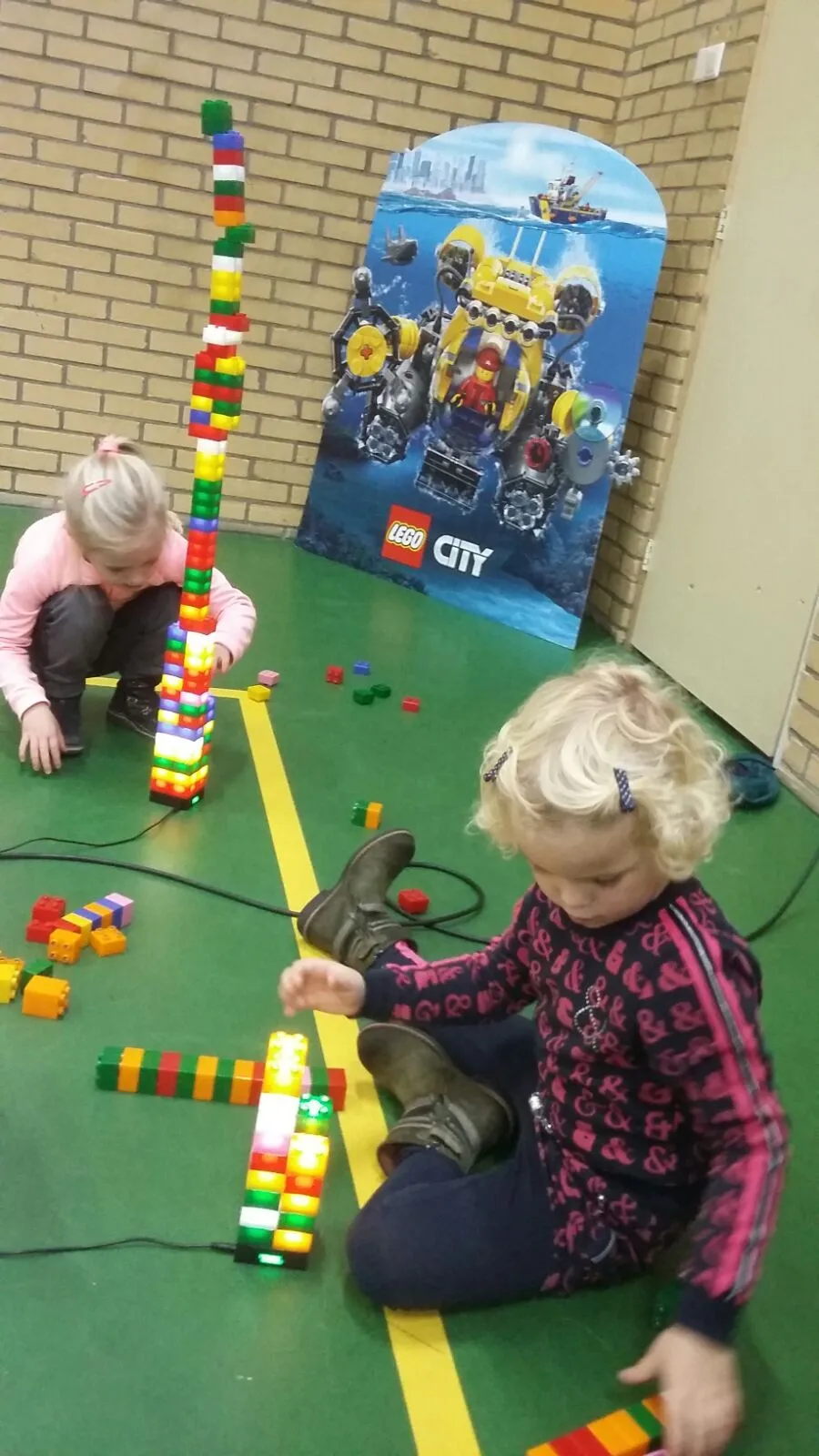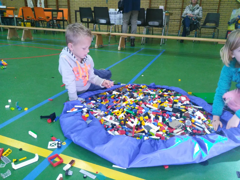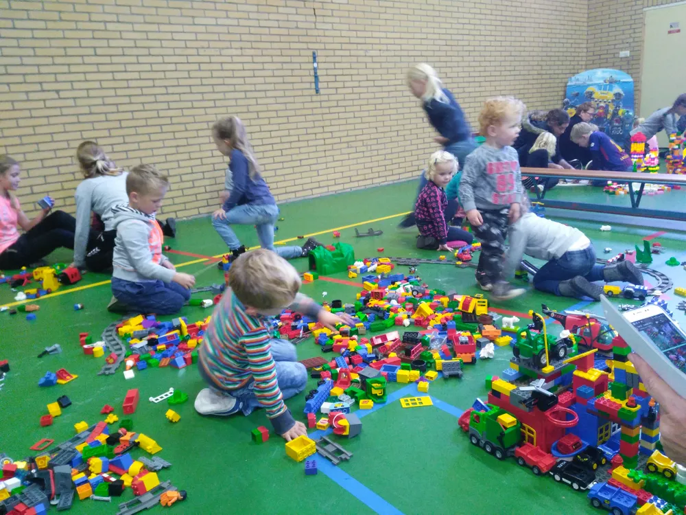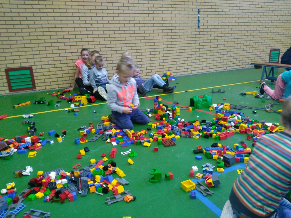 Meteen vanaf 13.30 uur liep de zaal al vrij snel vol met kinderen uit Manderveen en omgeving. Niet lang daarna was de zaal weer bezaaid met LEGO, Duplo en Lightstax (soort van lichtgevende Duplo-stenen).