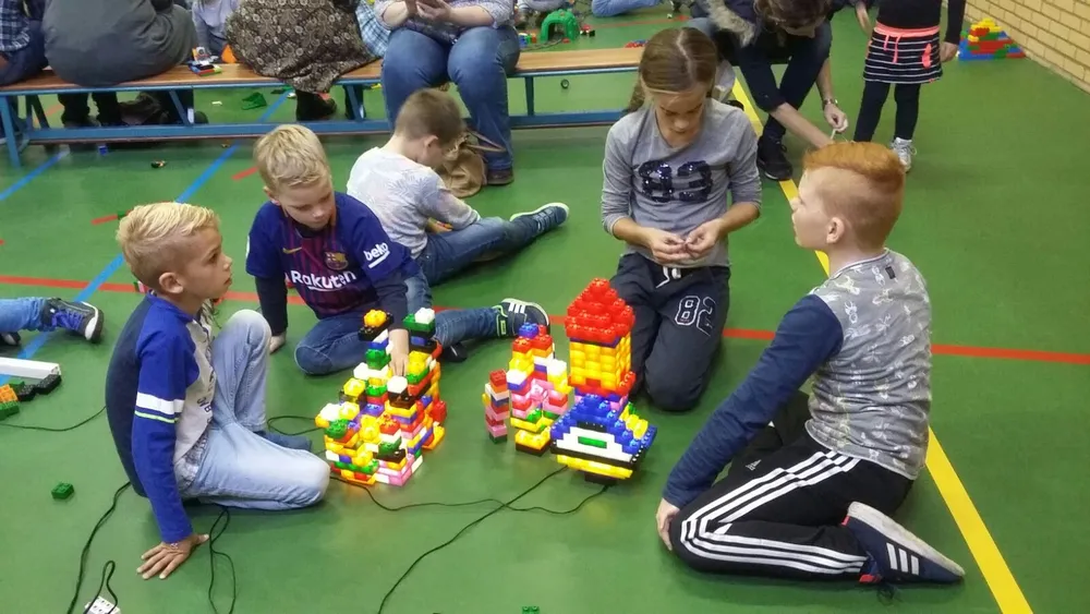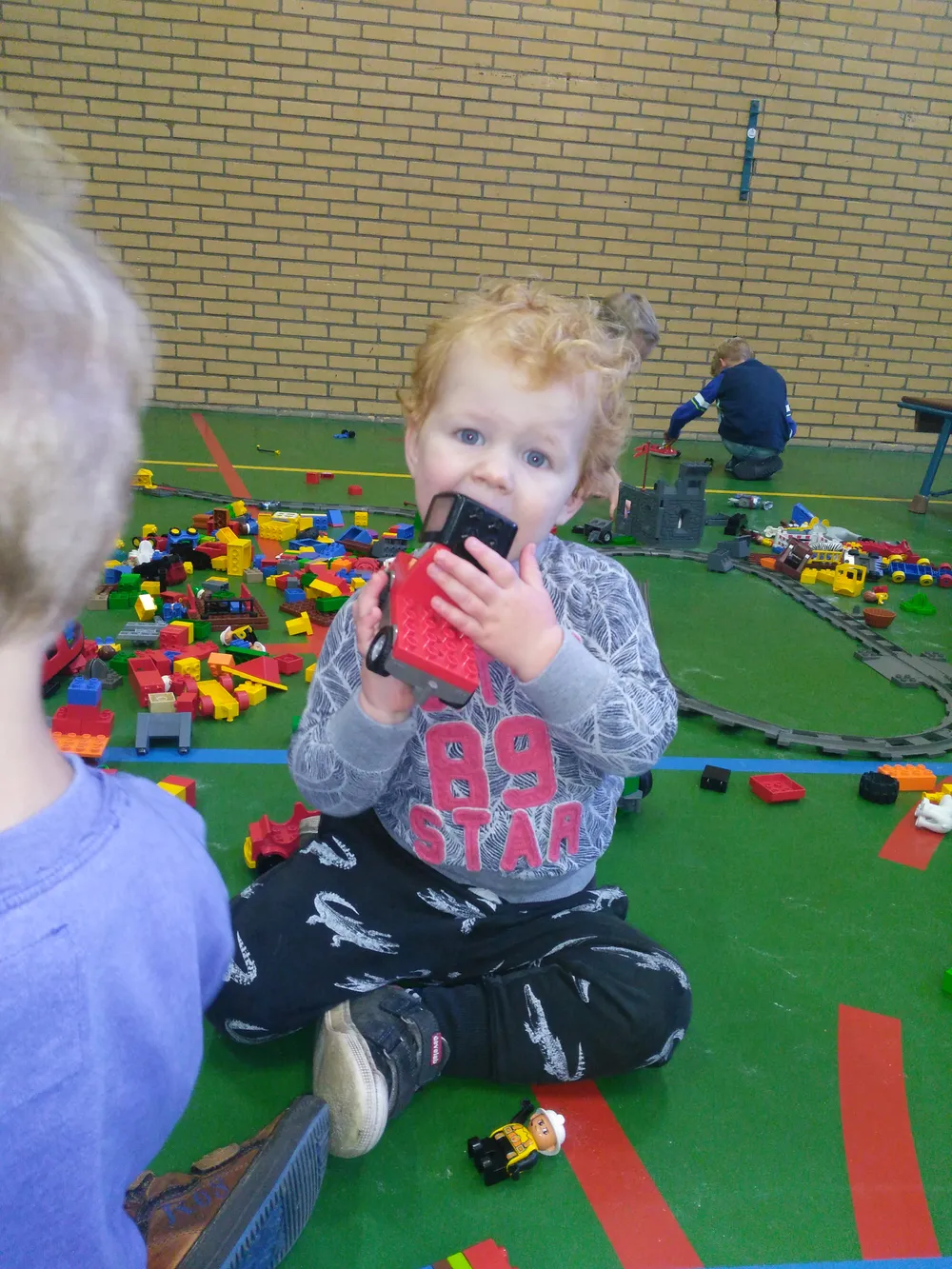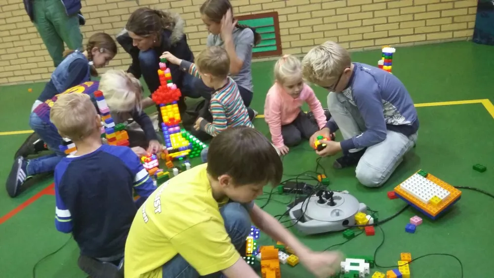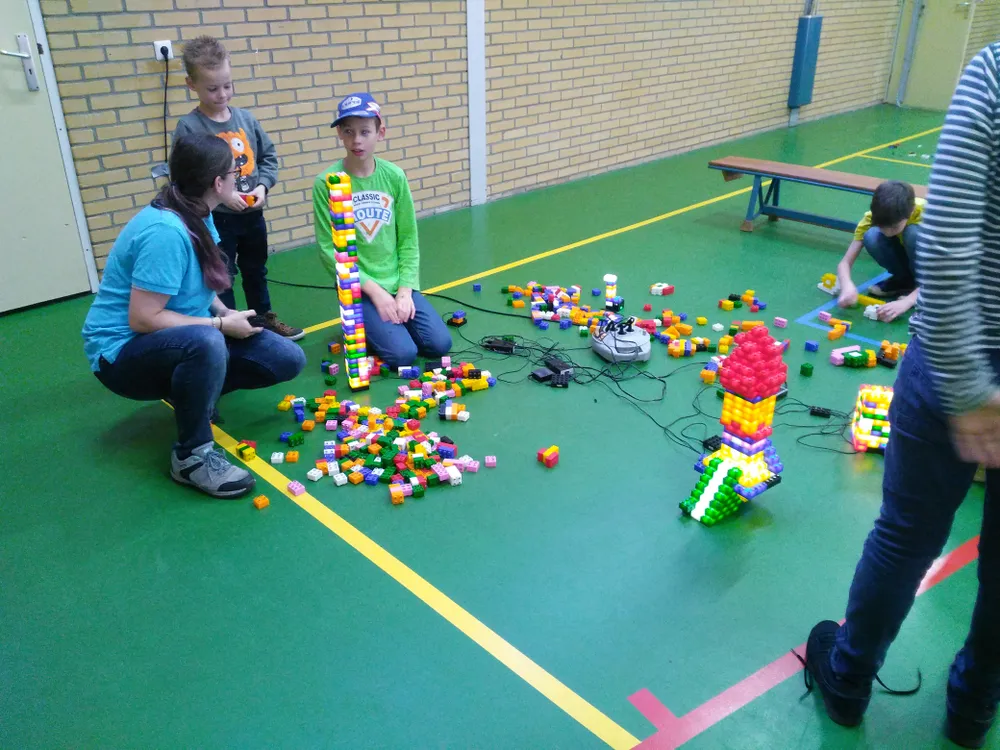 Meteen vanaf 13.30 uur liep de zaal al vrij snel vol met kinderen uit Manderveen en omgeving. Niet lang daarna was de zaal weer bezaaid met LEGO, Duplo en Lightstax (soort van lichtgevende Duplo-stenen).