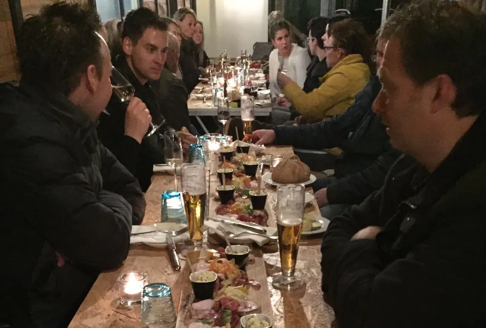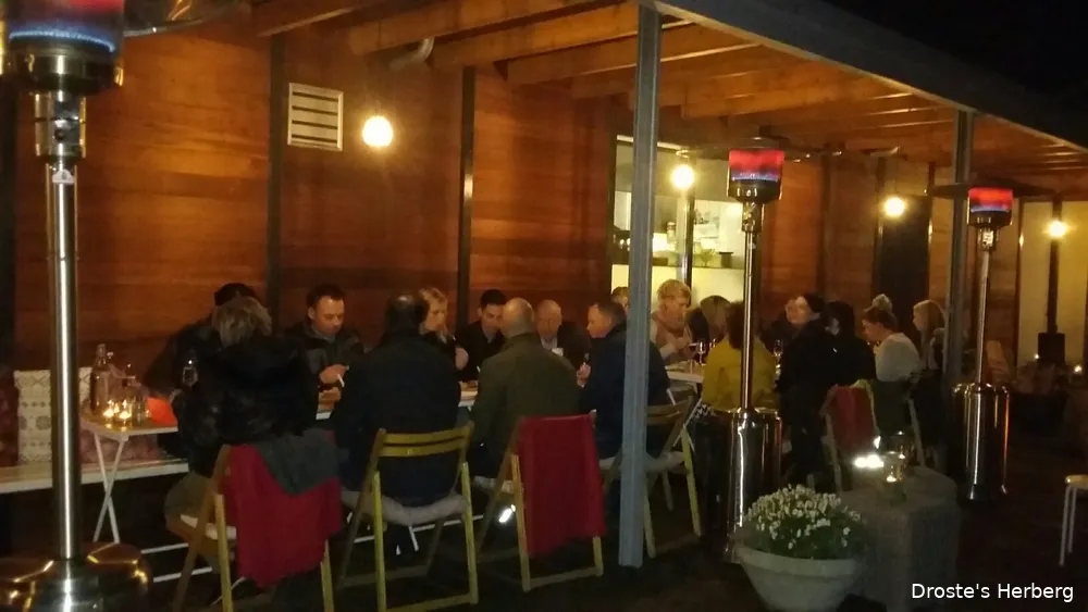 Het was lang gezellig, warm en knus buiten onder de veranda. "We kijken terug op een origineel, smakelijk en gezellig personeelsfeest. We hebben elkaar gevonden en ontdekt, en wat hebben we geluk gehad met het weer", aldus de organisatie.