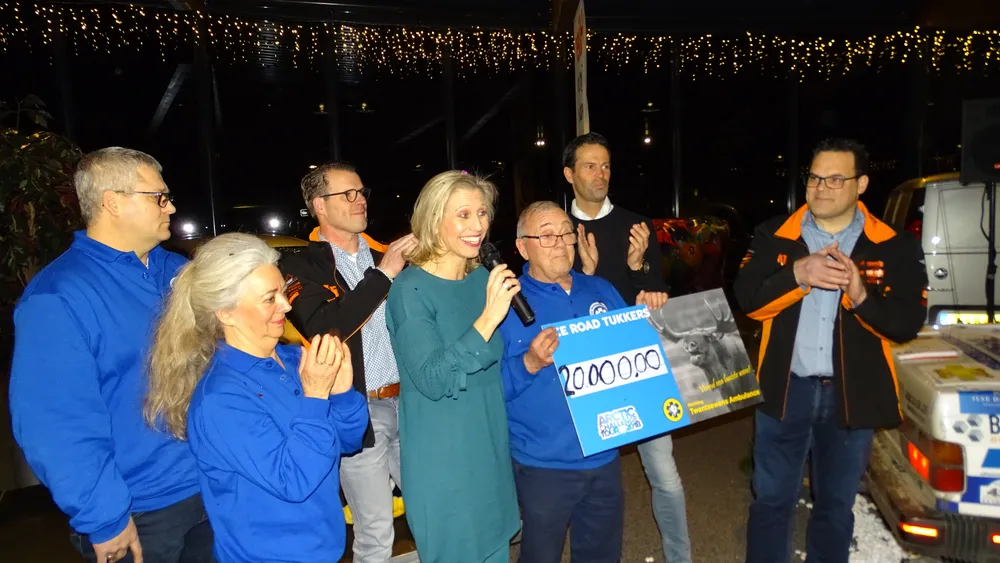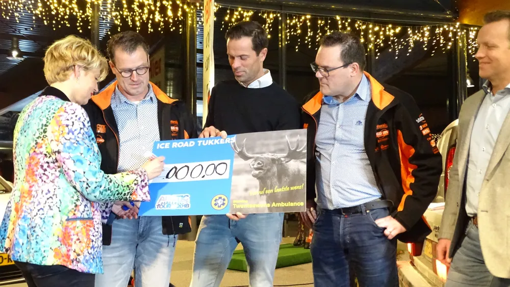 Tijdens een feestelijke sponsoravond bij auto Bekhuis in Vasse werd vanavond bekendgemaakt dat de broers uit respectievelijk Vasse en Ootmarsum geen €1.000 of €1.500, maar het bedrag van €20.000 hebben opgehaald voor hun goede doel. "Onze pa heeft in zijn laatste levensfase genoten van het enthousiasme van de vrijwilligers van de Twentsewens Ambulance. Hij heeft helaas zelf geen gebruik eer kunnen maken van een reis met de ambulance, maar de inzet en bevlogenheid van de vrijwilligers hebben op ons een dusdanige indruk gemaakt dat wij aan onze reis graag hun werk als goed doel wilden verbinden."