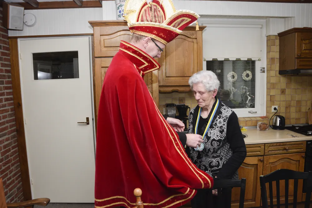 In de carnavalstijd passeren vele tradities de revue in het Pin'ndoarp. Zo brachten prins Ronald en adjudant Sander een bezoek aan Marie Deterink. Zij heeft afgelopen zomer de respectvolle leeftijd van 90 gehaald en dat was voor het regeringsduo reden voor een hoogwaardig bezoek.