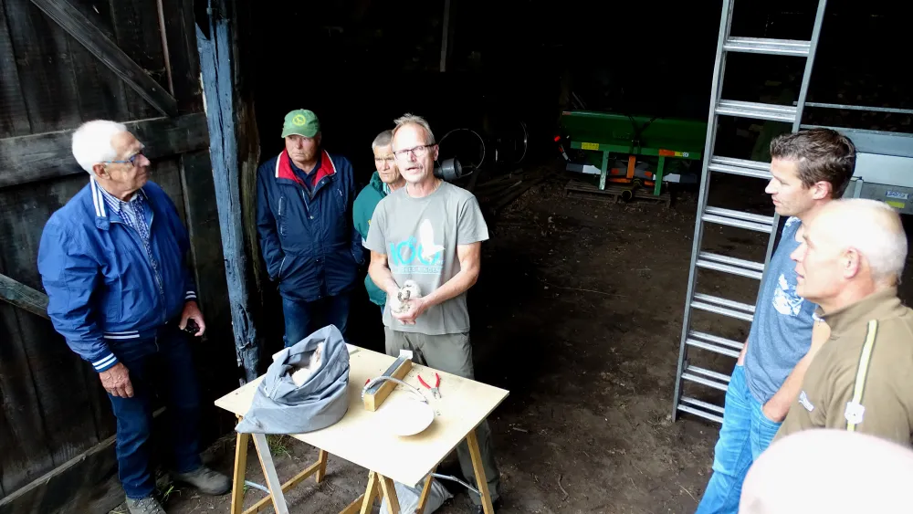 Het boerenerf aan de Meijersweg in Geesteren, waar de families Braakhuis en Haarhuis wonen, wordt volgens Ben Haarhuis al sinds de 13e eeuw door mensen bewoont. Maar zoveel belangstelling als er vanavond voor een nest met kerkuiltjes was, dat is wel uitzonderlijk. Op de eerste etage van een schuur die ergens in de 15e eeuw gebouwd is, zagen ze het daglicht - al zijn deze roofvogels vooral 's nachts actief. Bij het ringen gaven de jonge uilen geen kik en bleven zelfs doodstil op hun rug liggen bij het weegmoment. "Ik hoorde laatst midden in de nacht een hard geluid, echt flink gesis. Ik vroeg direct tegen mijn man Bram wat dat toch was... Dat bleken dus deze beesten te zijn. Ik had zoiets nog nooit eerder meegemaakt. Je kunt ze echt goed horen", vertelt Marloes. "Prima dat ze hier in de schuur zitten, maar ik hoef ze niet bij ons binnen te hebben hoor."