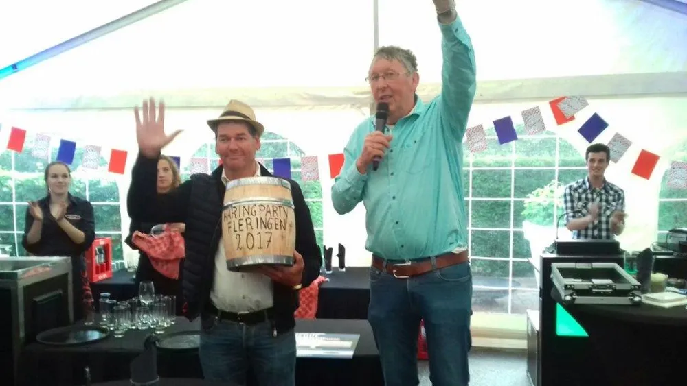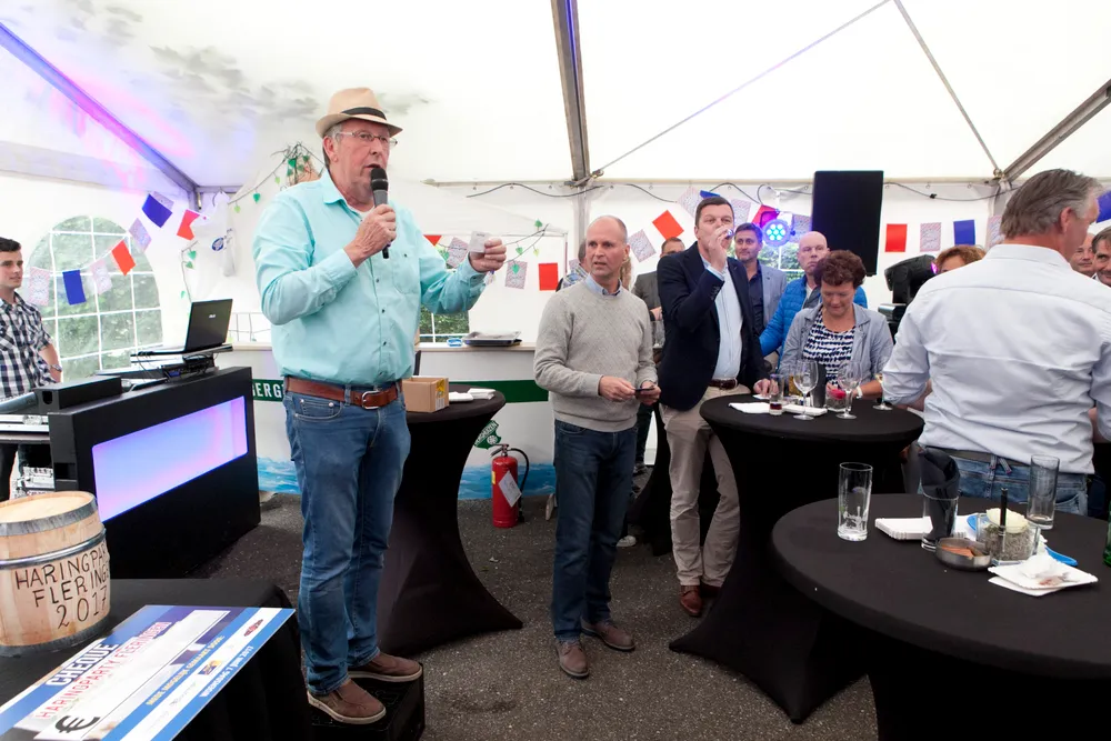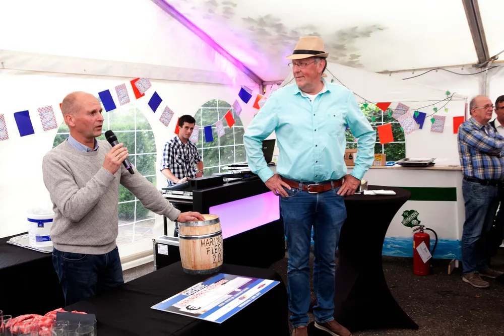 De veiling van het vaatje haring werd op voortreffelijke wijze gedaan door Gerard aan de Stegge. Als voorzitter van de jubileumcommissie van VCF'68 nam hij de veilinghamer ter hand. Na een klein uurtje was er een prachtig resultaat behaald. De veilingmeester sloeg af op een bedrag van €6.725. Het laatste bod op het vaatje werd gedaan door Harry Kuipers van Kuipers Logistics te Oldenzaal. Met hem als winnaar blijft het vaatje dit jaar in Fleringen.