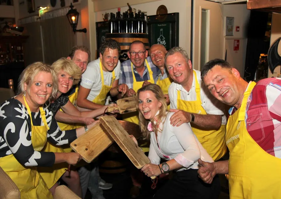 Lekker eten, maar eerst zelf flink aan de bak. Restaurant Kampkuiper in Harbrinkhoek was afgelopen donderdag de locatie waar 60 grotere sponsoren van MVV'29 als volleerde koks rondkeken, gerechten maakten, proefden en volop genoten.