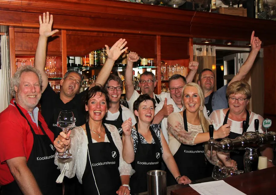Na de intensieve bereiding mochten de deelnemers natuurlijk aan tafel gaan genieten van het door henzelf bereide diner.