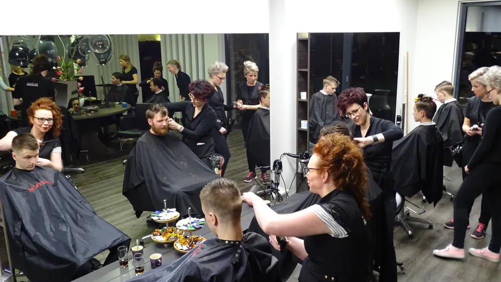 Er waren alleen mannen welkom op de halfjaarlijkse metamorfose-avond, gisteren bij Kapper Huub in Tubbergen. Afgezien van de kapsters natuurlijk. Met gratis drinken, hapjes en wat al niet, werd het een gezellige boel.