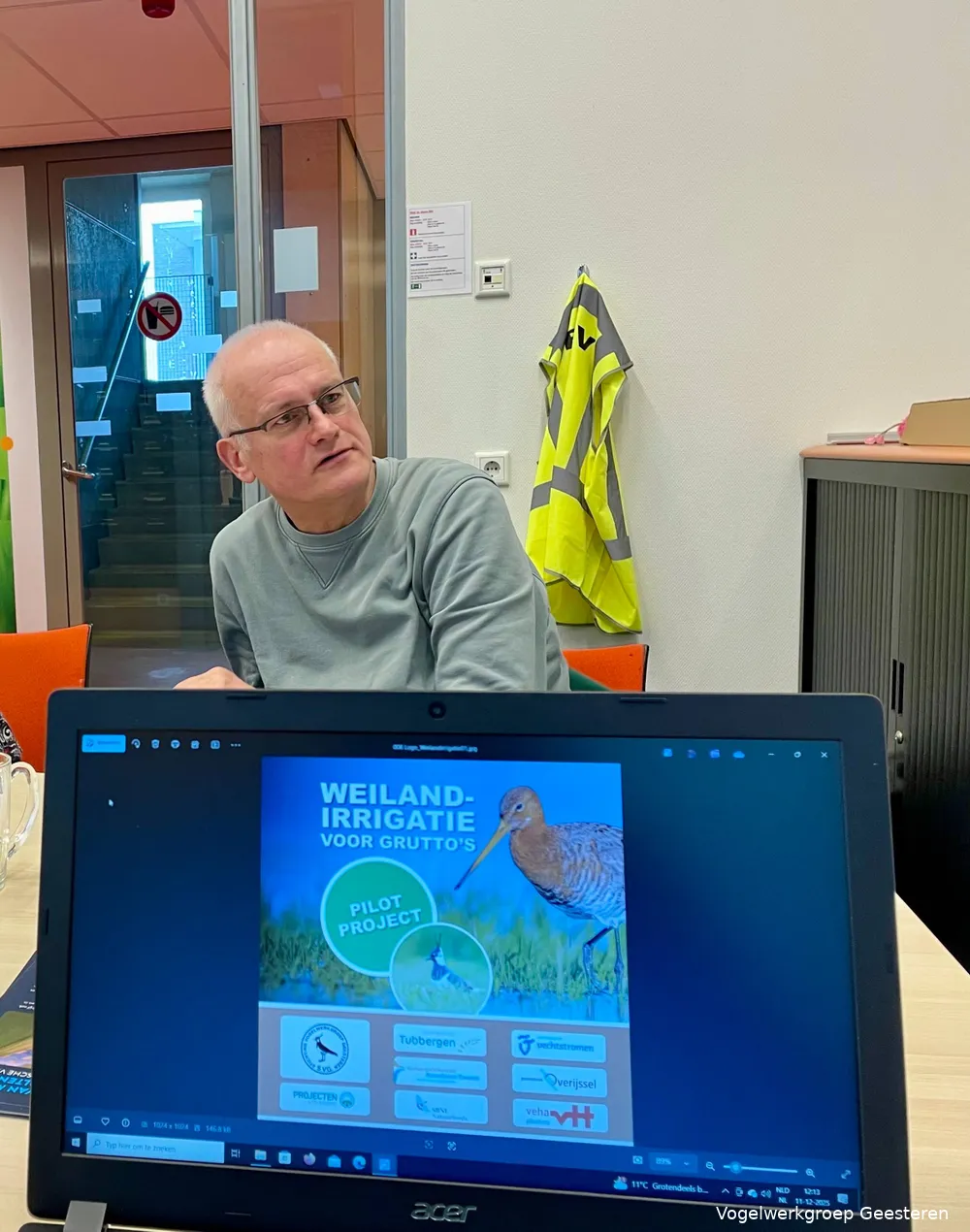 Hennie Schröder en Marcel Tettero vertelden over de daling van de weidevogelstand en de actie 'Red de Grutto' voor het aanschaffen van een drone en de aanleg van zes plasdrassen bij Geesteren. Ook de proef met weilandirrigatie tegen de gevolgen van klimaatverandering kwam uitgebreid aan bod.