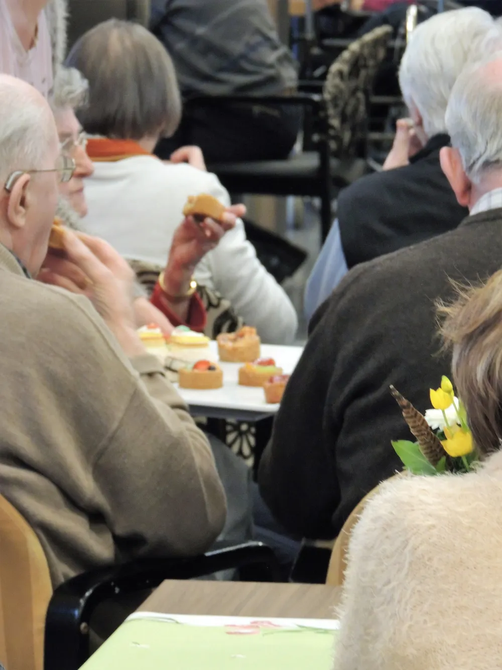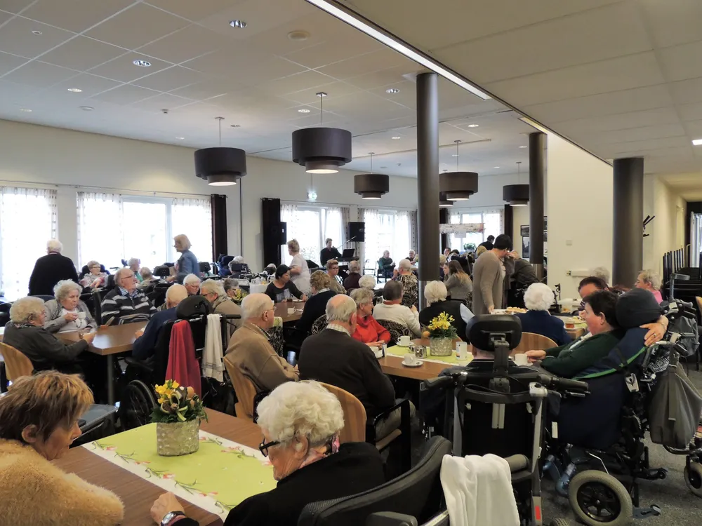 Even na 14.00 uur zijn vrijwel alle stoelen in de grote activiteitenruimte annex restaurant bezet. Er wordt gepraat en gelachen en er worden handen geschud door mensen die elkaar enige tijd niet gezien hebben. Medewerkers van MeulenbeltZorg Tubbergen verzorgen de koffie en thee en schalen met smakelijke petit fours gaan rond. Ondertussen beroert muzikant Theo Oude Avenhuis de toetsen.