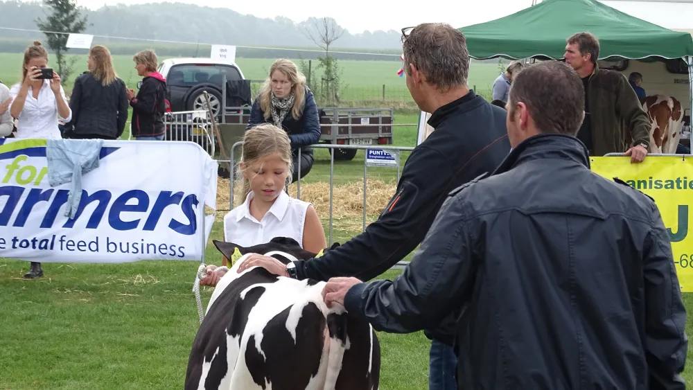 Zenuwachtig? Ja, wel een beetje... Imke Wenneger (7) leidt voor het eerst een kalfje rond langs de kritische jury en geeft eerlijk toe dat ze wel wat spanning voelt. Maar beter kon het bijna niet gaan. Ze worden eerste in hun rubriek en mogen later op de dag nog eens in de wedstrijdring komen voor de finale. Niet alleen heeft de kleine meid in de zomermaanden veel geoefend met haar roodbonte viervoeter, ook ging er heel wat andere voorbereidingen aan vooraf. Haar moeder Gabriëlle denkt nog even goed na alvorens ze antwoord geeft, maar komt al snel tot de slotsom dit het wel waard is. "Ze geeft echt om het kalf en die laat het ook met gemak over zich heen komen. Ik had overigens niet verwacht dat er zoveel bij kwam kijken. Eerder kwam ik weleens als bezoeker kijken bij deze kalverkeuring, toen het nog in Tubbergen was. Dit jaar doen we voor het eerst mee, maar dat is wel andere koek. Het was vanmorgen ook behoorlijk vroeg. Afgelopen week hebben we het kalfje flink onder handen genomen en overal schoongemaakt. Bleek dat ze gisteravond of vannacht lekker in de stront had gelegen. Tja, dan moet je haar weer flink wassen", verzucht Wenneger-Steerenberg met een kwinkslag. "Ik heb speciale doekjes gekocht en haar daarmee afgenomen. Ook moet de oren compleet schoon zijn, van buiten en binnen. Dat betekent dat je het oorsmeer er heel diep uit moet halen, want oh wee als er iets wordt aangetroffen. Dat is direct puntaftrek."