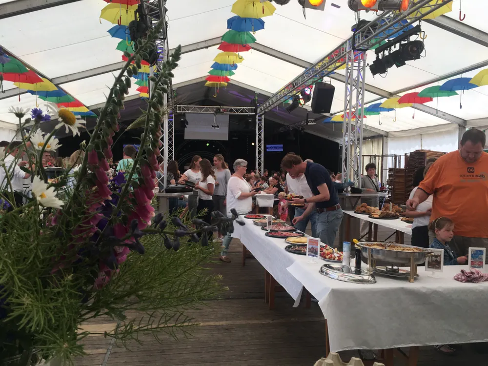 Zondagochtend was de tent gevuld met lange rijen tafels. Ruim 200 Vassenaren schoven aan om te genieten van een overvloedig brunchbuffet met lekkers van lokale winkeliers en horecaondernemers. Verse aardbeien en croissantjes, aspergesoep en spinaziesoep, pannenkoekjes, gebakken eitjes, boerenkaas, verse vleeswaren, salade; het kon niet op. Direct aansluitend aan de brunch trok Brommers kiek'n... en meer! veel gezelligheid op de naastgelegen weide. Onder de stralende zon streken gezinnen en vriendengroepen neer op picknicktafels en hooibalen om te genieten van oude brommers, sfeerkraampjes, een vip-corner voor weizenbier en kleine speelhoekjes voor de kinderen.