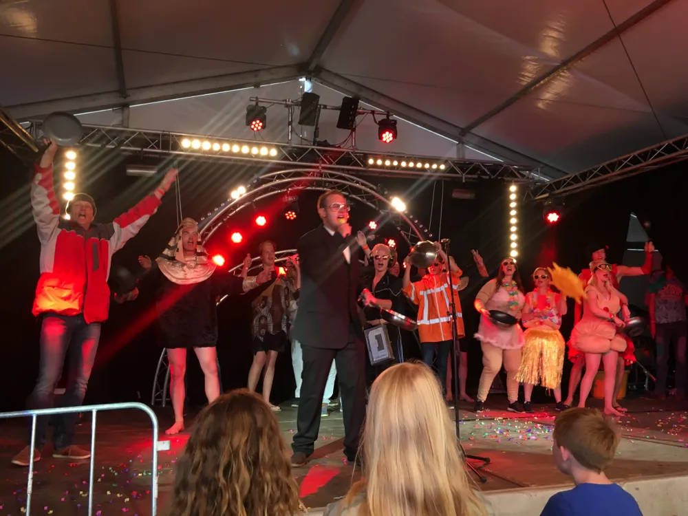 Zondagavond was de tent volledig omgebouwd naar het welbekende Top-2000 café. Bonanza Drive-inn had er 'ouderwets' de stemming in met hits uit voorbije jaren. De Stones, Abba, Paradise by the dashboardlight, Thunderstruck; het kwam allemaal voorbij. Prachtig om te zien hoe verschillende generaties zij aan zij in de Pareltent stonden te feesten. Menig ouder en kind stonden samen op de dansvloer.