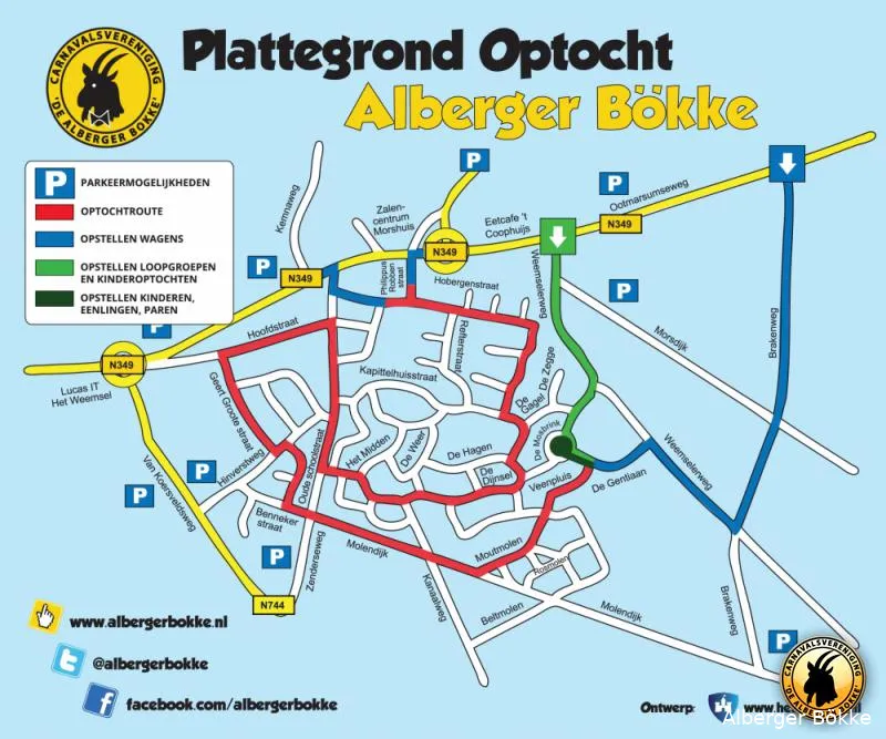 Om het geheel goed te laten verlopen, heeft de vereniging de medewerking van de Albergse bevolking nodig. De bewoners langs de route worden dringend verzocht om de straten autovrij te houden. Dit verzoek geldt ook voor de mensen die binnen de route wonen. Bij eventuele calamiteiten kan men dan snel van binnenuit de optocht bereiken. Andersom zal de vereniging proberen de overlast zoveel mogelijk te beperken. Zo zijn er strenge regels aan het geluidsniveau gesteld en worden de straten de volgende dag weer schoongeveegd. Walter: "We vragen bij deze de aanwonenden om de rommel op straat te vegen. De gemeente zal dan zorg dragen voor het opruimen, in samenwerking met een ploeg van onze vereniging."