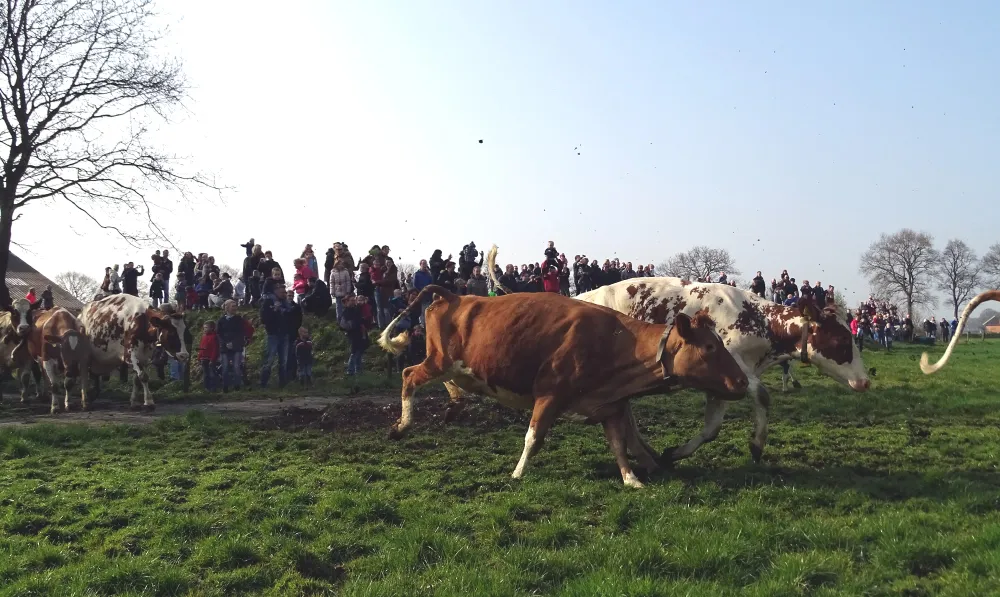 Vandaag was het weer zover. De Boerderij opende haar deuren voor het massaal toestromende publiek én de koeien die in de wintermaanden op stal hebben gestaan. Het jaarlijkse spektakel trok enkele honderden kinderen en volwassenen.