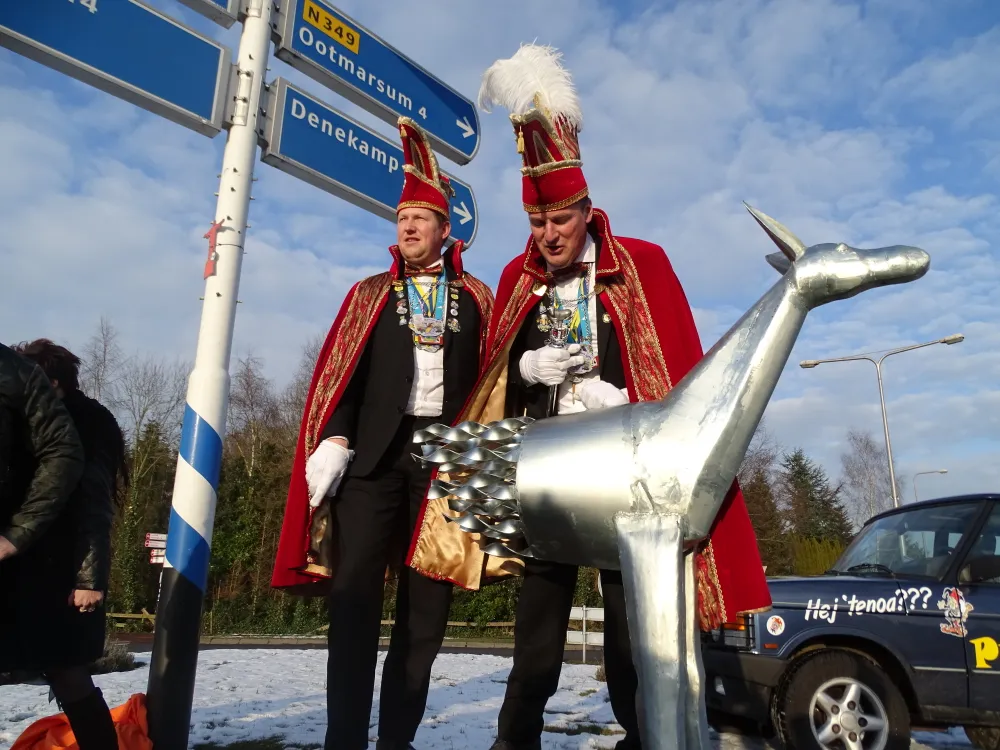Ieder dorp in de gemeente Tubbergen kreeg rond de eeuwwisseling een zogeheten millenniumkunstwerk, in Reutum een reebeeldje dat al snel in de volksmond de naam Desiree kreeg. "Maar omdat deze dus vermoedelijk gestolen is, althans niet weer terug is gevonden en we er wel graag iets voor terug wilden hebben, kregen de carnavalshoogheden van dit jaar de opdracht voor een vervanger te zorgen. Zo gezegd, zo gedaan", legt voorzitter Frank Droste namens de Reutumse carnavalsvereniging De Pin'n uit.
