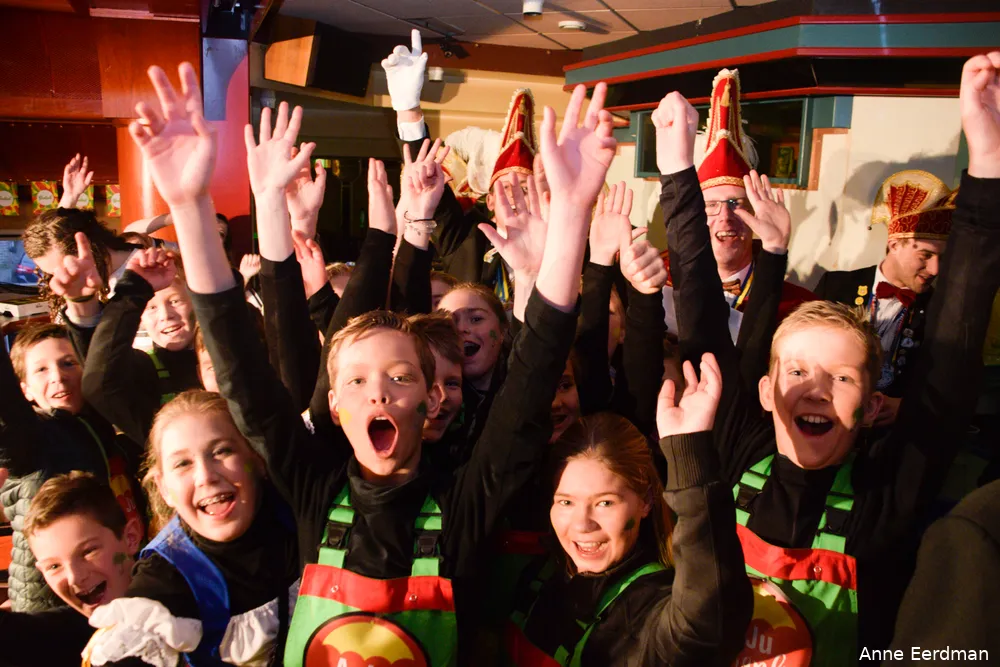 De jongens van groep 8 hebben met Aju Paraplu de aanmoedigingsprijs ontvangen en de Bays-geinprijs ging naar De Jannen met het onderwerp De Feestpartij.