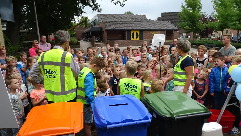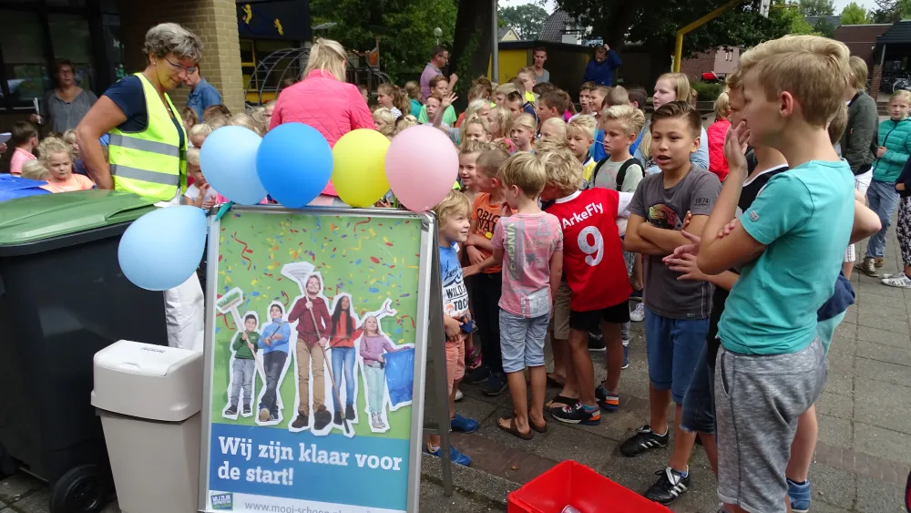 Alle deelnemende scholen aan de pilot ontvingen het startpakket met voorlichtingsmaterialen en een educatieve video over de verschillende soorten afval en hoe deze worden gerecycled en hergebruikt. De scholen krijgen ook de benodigde containers om het afval te scheiden. Petra Streng, Projectmanager van het zwerfvuilprogramma Mooi Schoon: "We willen jonge kinderen op een leuke manier meegeven hoe je met afval omgaat en wat het oplevert als je afval op de juiste manier scheidt. Dan is het geen afval meer, maar grondstof." Deelnemende scholen zijn te herkennen aan het gevelschildje aan de muur met de volgende tekst: Onze school is Supporter van Mooi Schoon.