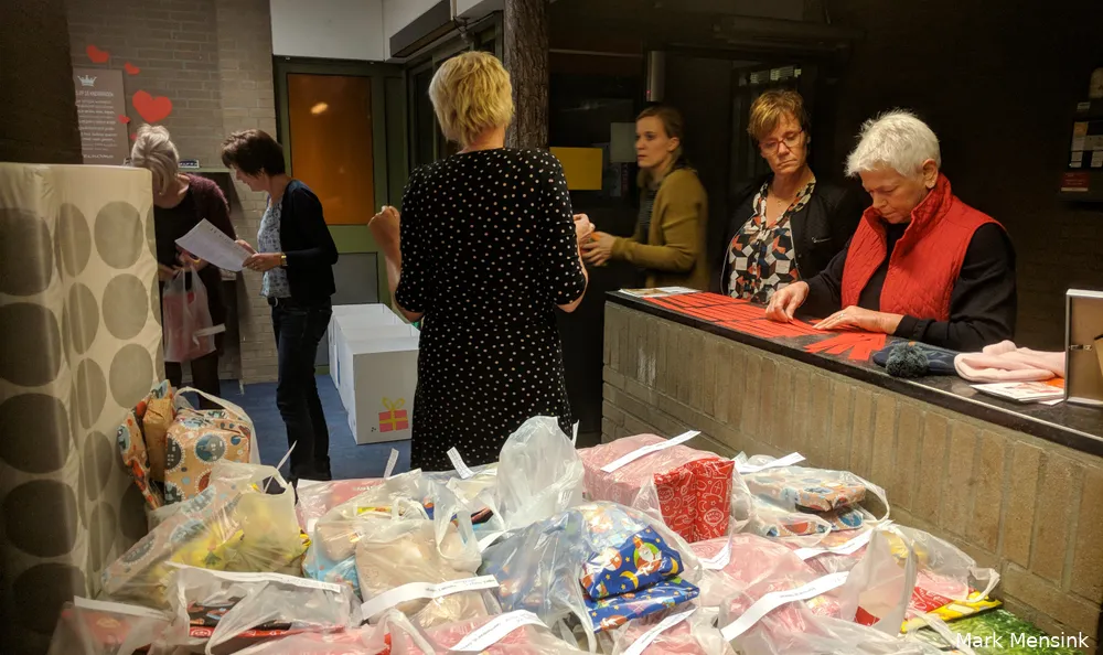 Woensdagavond was het een drukte van belang bij de Kinderkroon in Tubbergen. Er wordt gesjouwd met dozen, juten zakken, hooi, mandarijnen, snoepgoed en de rollen cadeaupapier en plakband vliegen er doorheen om alle cadeautjes ingepakt te krijgen.