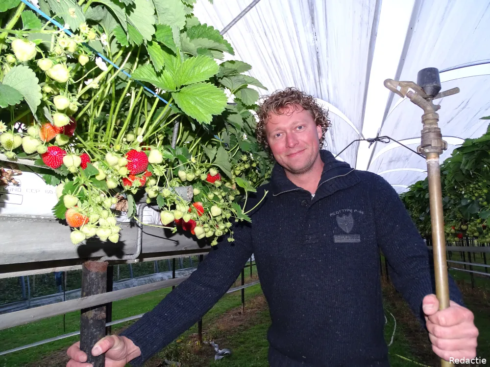 Hardrik hoeft gelukkig niet handmatig te sproeien, maar controleert wel of de sproei-installatie automatisch begonnen is. Ieder uur weer, met weinig nachtrust als resultaat. Maar ook - komend seizoen - sappige aardbeien tot gevolg.