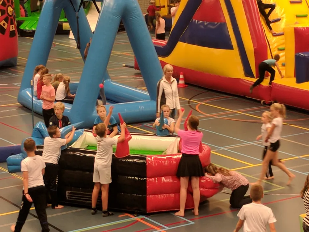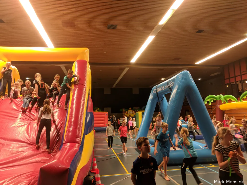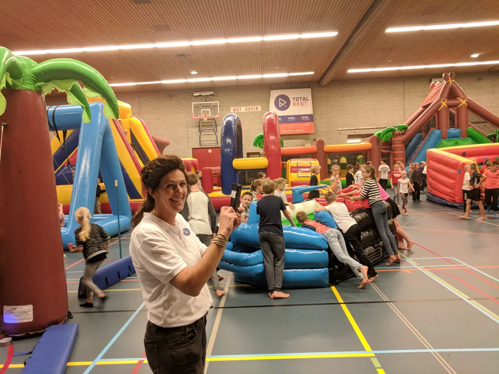 Organisator én moeder Silvia Kemperink moest gisteren zelfs 'nee' verkopen toen er nog meer aanmeldingen kwamen. Een overdonderend succes, zo vatte de mede-eigenaresse van verhuurbedrijf Total Rent uit Albergen het vanmiddag zelf samen. "Ja, iets anders kan ik er niet van maken. Het slaat gewoon enorm aan", zegt ze haast wat verontschuldigend. "Het is natuurlijk heel toegankelijk, dat helpt zeker. Deze hal is heel ruim, dus er passen meerdere stormbanen in. Kinderen uit het dorp zelf fietsen of lopen er makkelijk heen en vanuit andere dorpen kan je er snel komen. Dat merken we wel, want uit elke plaats in de buurt komen ze. Albergen, Geesteren, Harbrinkhoek; noem het maar op. Tubbergen uiteraard ook." Reden voor haar om eens in andere gemeenten navraag te doen of er animo is om iets soortgelijks te organiseren in een vakantieperiode.