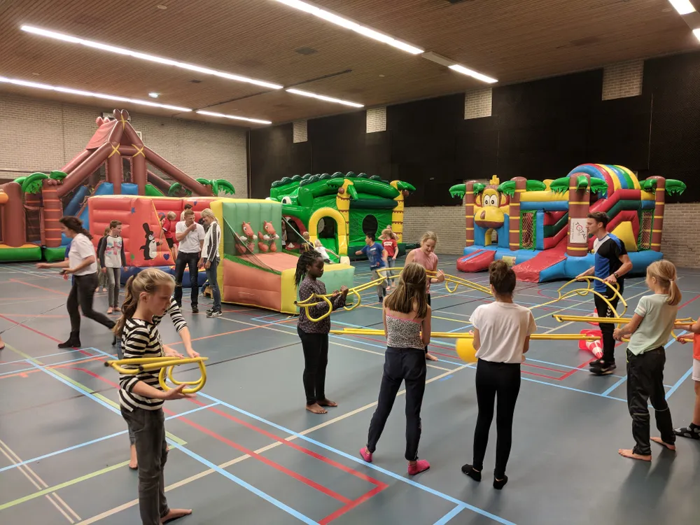 Met 200 spelende kinderen, alleen al 's middags, zat het allereerste springspektakel in de Tubberger sporthal bommetjevol.