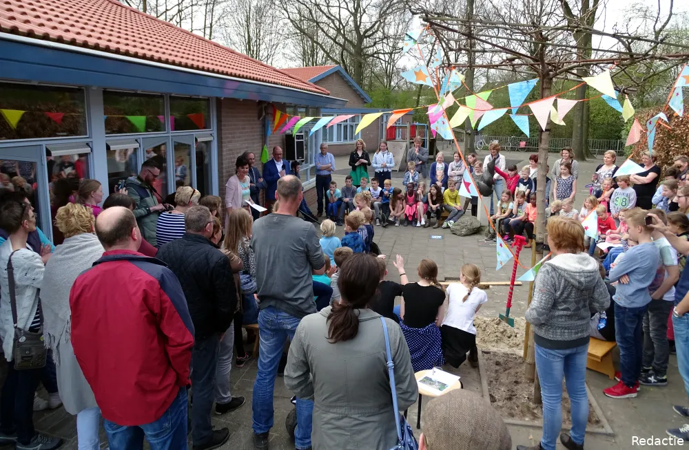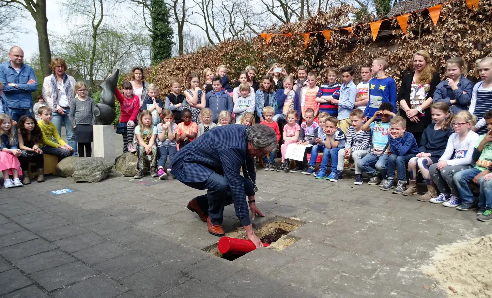 Vandaag hebben de leerlingen van basisschool De Marke uit Tubbergen het project 'de tijdmachine' gezamenlijk afgesloten. Burgemeester Stegers heeft geholpen om de tijdcapsule te begraven in het schoolplein.