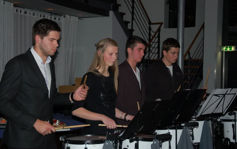 Het orkest en de slagwerkgroep onder leiding van Jaap Hazewinkel wisselden elkaar af, en maakten er een boeiend kijk- en luisterspel van. Een geniaal duet tussen twee snaredrums werd vertolkt door Thijs Olde Hampsink en Jaap Hazewinkel. In het stuk Duet Supreme, het D-examenwerk van Thijs afgelopen voorjaar van maar liefst 9 minuten, lieten zij beiden horen over een geweldig gevoel voor ritme te beschikken. Verschillende werken met het thema Engeland kwamen voorbij, waaronder filmmuziek uit Batman, Harry Potter en James Bond, maar ook Schotse dansen en het Ierse Lord of the dance. De slagwerkgroep liet zien en horen goed te kunnen omgaan met een zeer divers instrumentarium. Solo’s voor djembé en bongo’s waren te horen, en in het werk Three Jobs werden onder andere typemachines en fabrieksmachines op de slagwerkinstrumenten heel herkenbaar vertolkt.