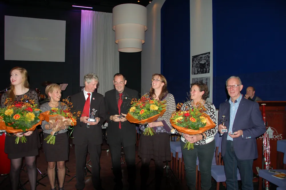 Aan het eind van het concert was er ruimte voor het Lid van het jaar, inmiddels een goede traditie waarbij een lid dat zich bovenmatig inzet voor de vereniging bedankt wordt. Lid van het jaar 2015 is geworden Tineke Zandstra. Dit vanwege haar tomeloze inzet voor de muziekcommissie en de concertcommissie, haar altijd positieve houding en manier waarop zij de jongere leden van het A-orkest helpt, begeleidt en ondersteunt. Een mooie standaard en een bos bloemen waren, uiteraard naast een hartelijk applaus van het publiek en de collega-muzikanten, haar terechte deel.