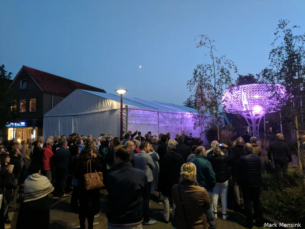 De onthulling van het allereerste grotendeels uit glas bestaande object kon de waardering van alle aanwezigen genieten. "Heel mooi, goed passend bij de omgeving", omschreef zo oud-burgemeester Stegers het treffend.